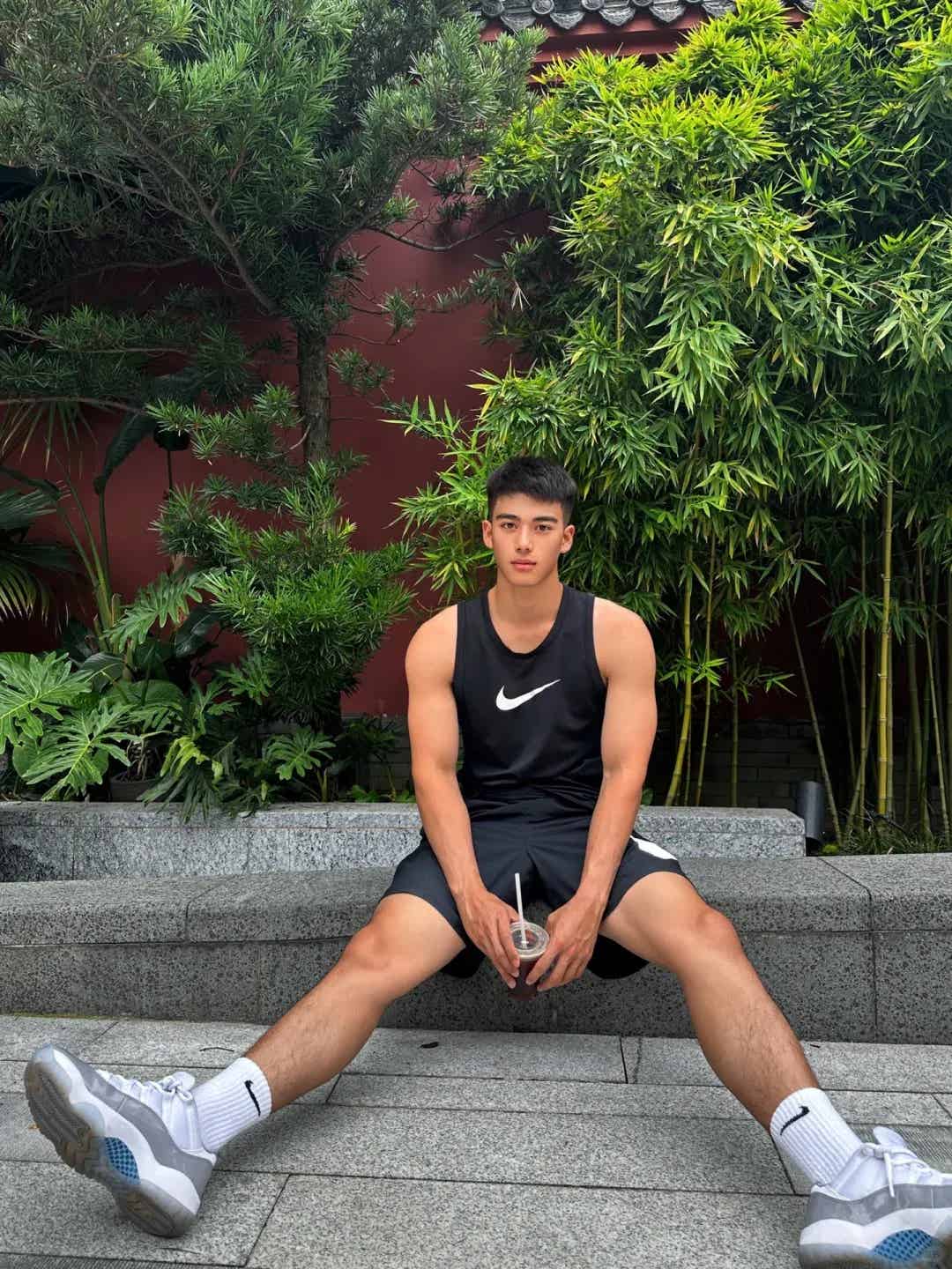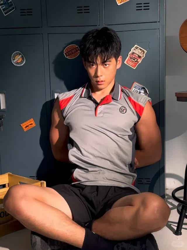 当然,颜值治愈归治愈,这种体育生男大最大的杀手锏还是身材!足球训练让他浑身的线条流畅结实,从手臂到大腿,再到后背,无一不充满力量感。一看就是那种身高180+,体脂低、肌肉密度高的类型——说实话,能驾驭短裤而不显瘦弱,腿部肌肉线条还能这么流畅,真的算是宝藏体育生了。