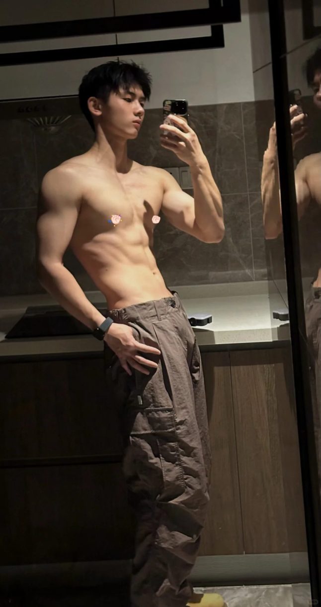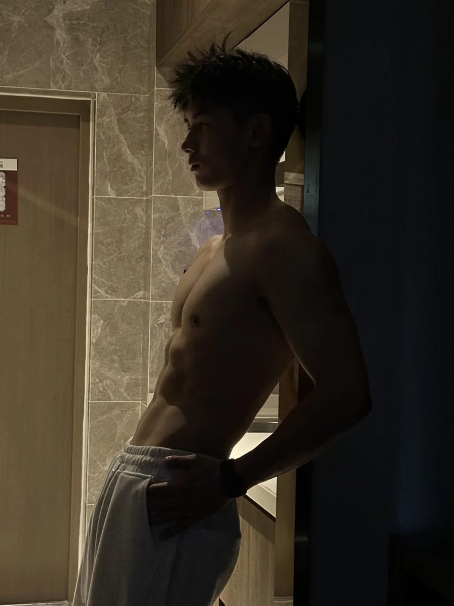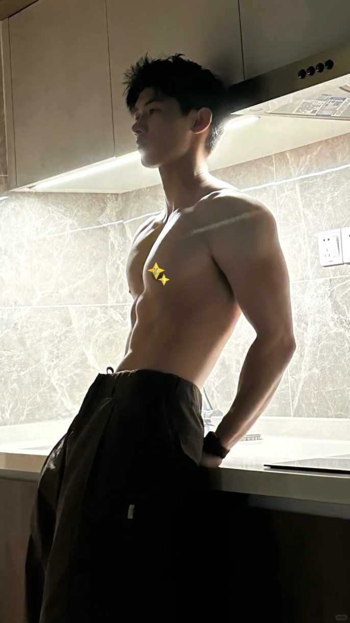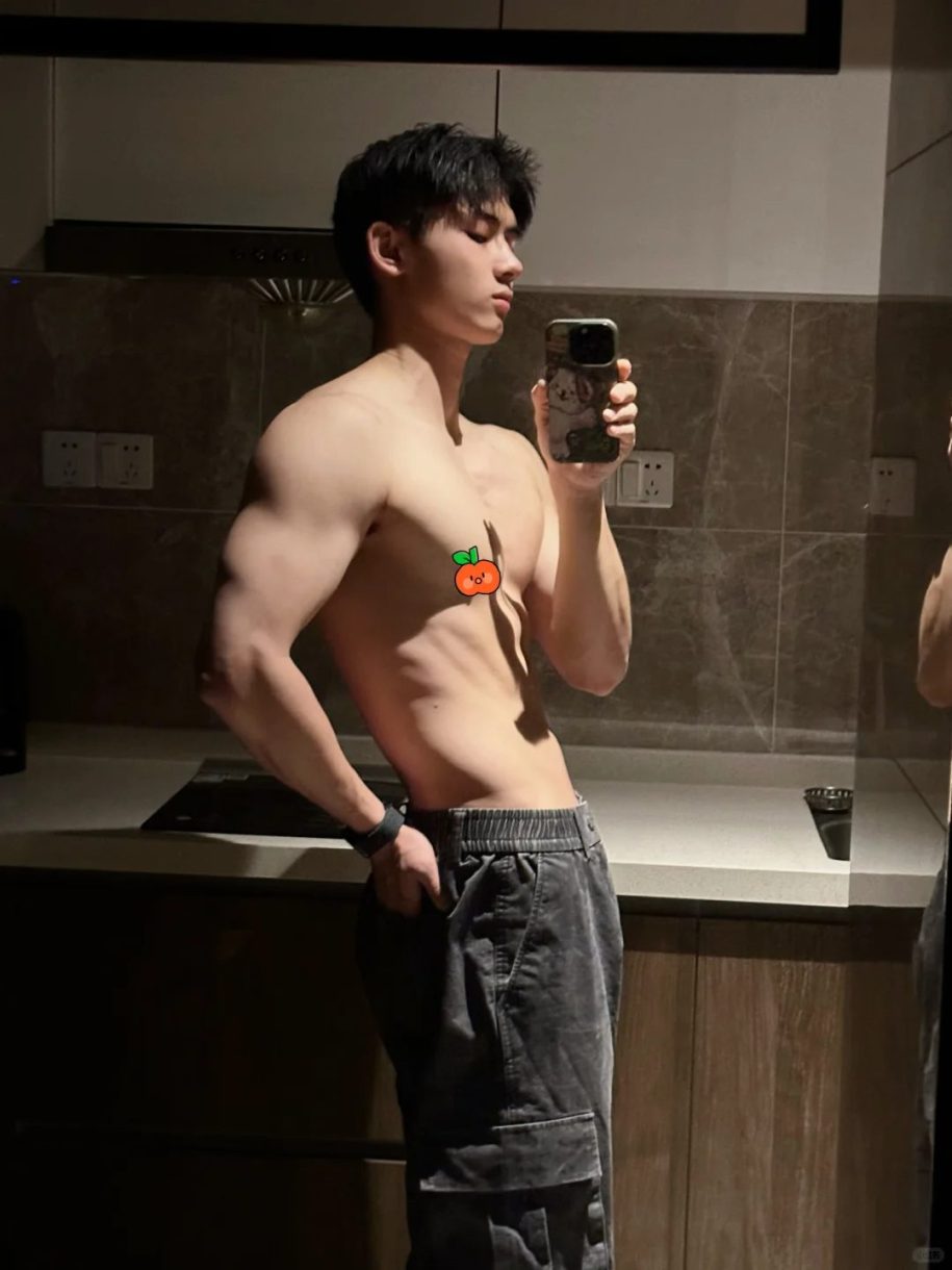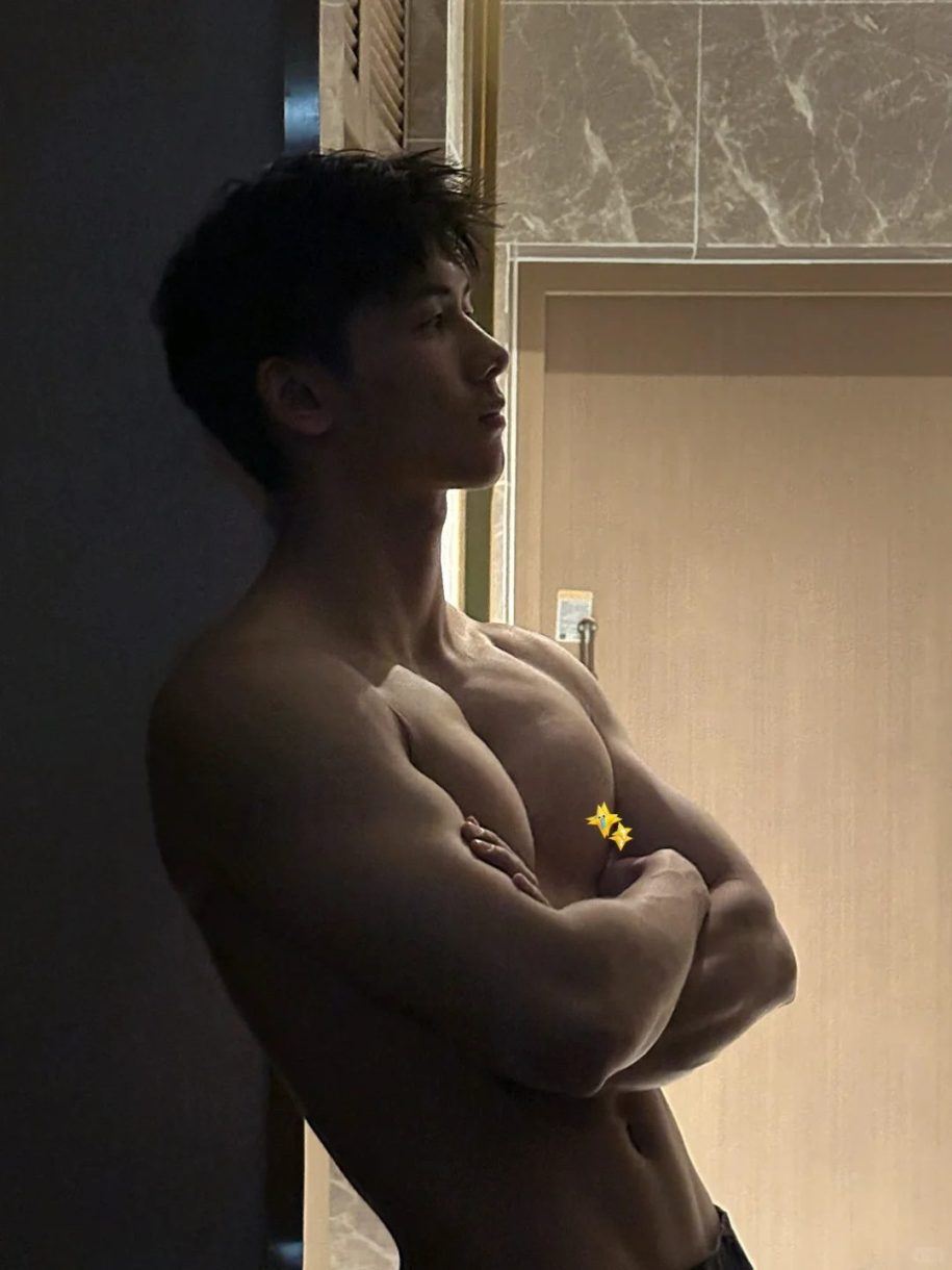 普洱荼的肌肉不仅紧致有型,还透着恰到好处的比例美感——胸肌饱满却不过分夸张,腹肌清晰又带着点自然的线条感,手臂粗壮而富有力量,搭配古铜色的健康肤色,真的是充满阳刚之气!特别是他喜欢穿那些略微修身的运动背心,胸肌直接把衣服撑起的瞬间,真的让人忍不住屏息凝神,直接被这种荷尔蒙的炸裂感拿捏得死死的!