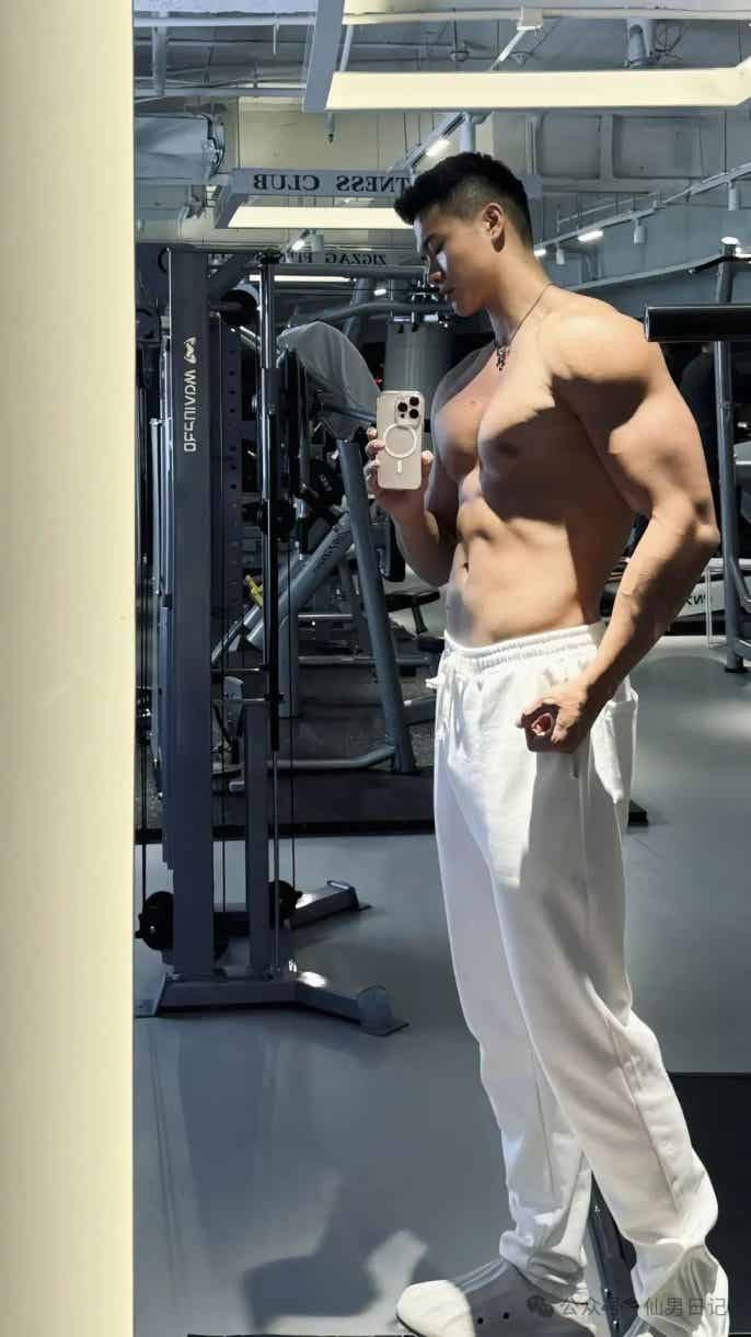 最后必须推一波小哥哥的健身房自拍。胸肌和胳膊上的肌肉都十分好看,这样的糙汉体育生,你喜欢吗?