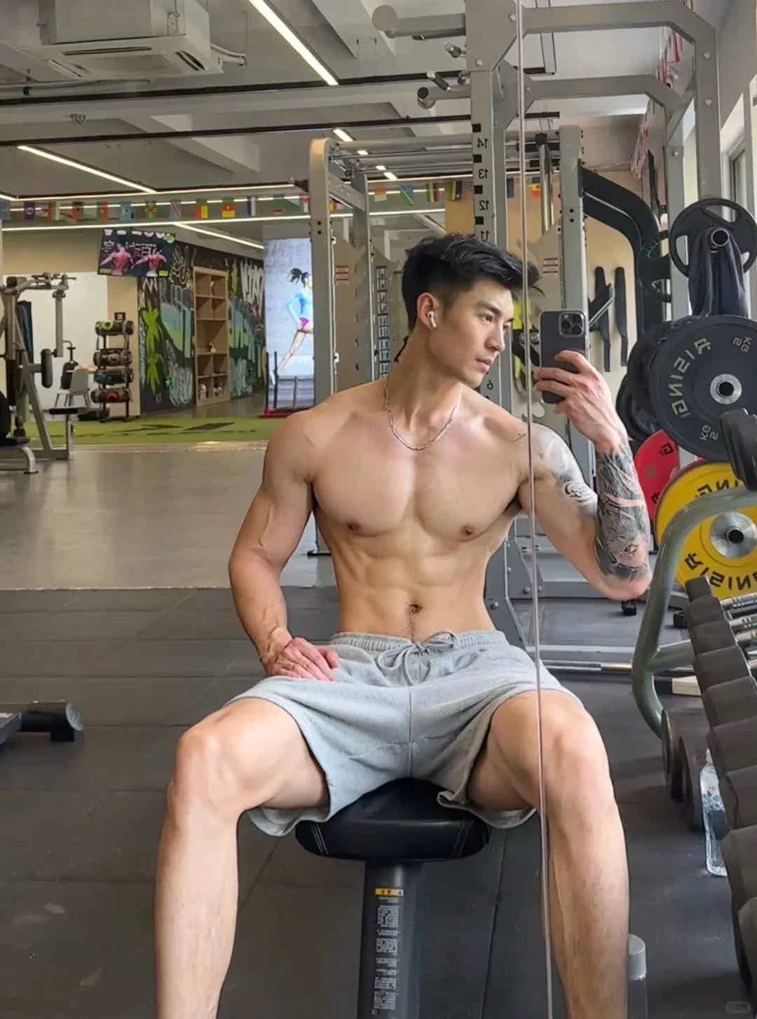 有着这样匀称有型的身材,在平时生活中锻炼是必不可少的,加上这让人看了就爱不释手的颜值,简直是太让人爱了,你看看他在健身的时候也是要把自己最帅的那一面展现给大家,笑起来的样子真的是太招人喜欢了,这样的身材就算是穿上这运动短裤也抵挡不了他的实力!