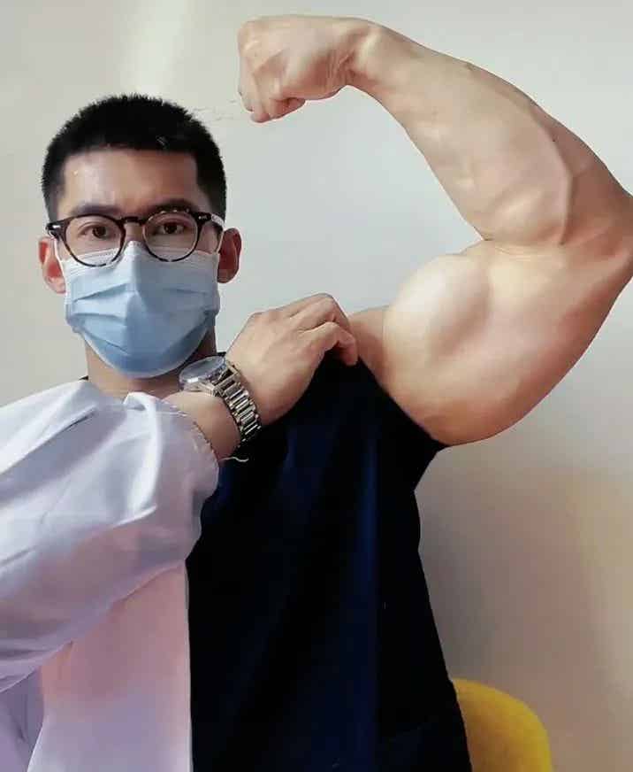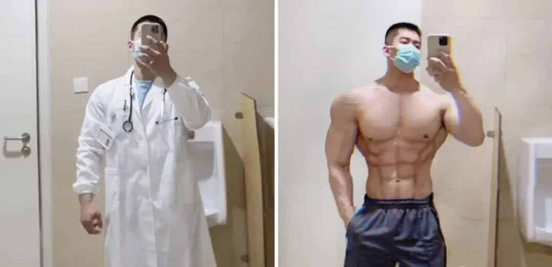 这颜值穿着白大褂戴着口罩就让大家觉得帅气十足当他脱掉白大褂之后网友们都惊呆了,这身材真的太棒了,你看看这背影再看看这强大的肌肉,相信找一个这样的肌肉男当朋友走在路上一定是非常有安全感的!