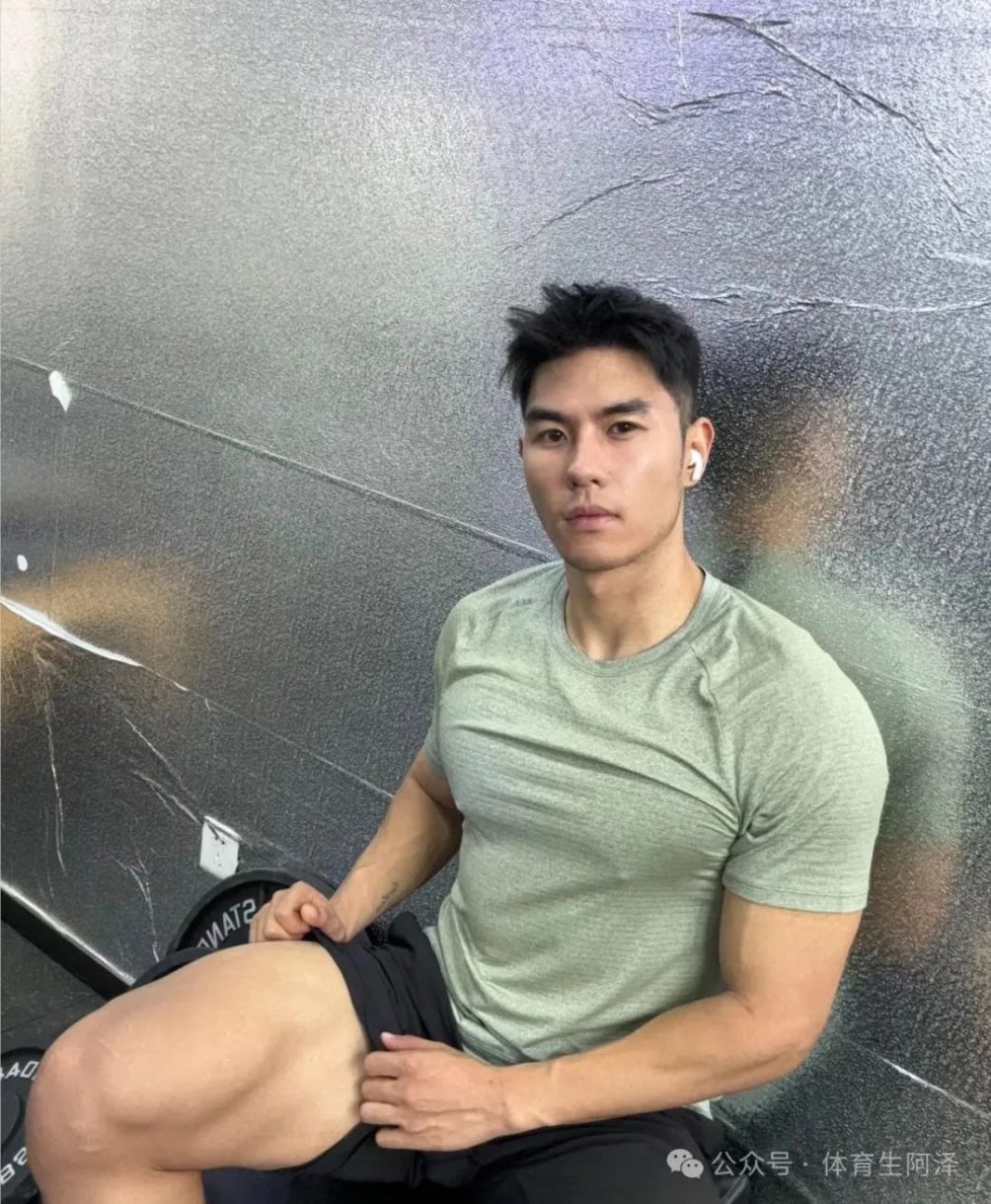 还有这个离谱的视角,直男都这么的拍照吗?如果真的是直男的话那真的就是直男的小把戏了。一边诱惑同,一边又说崆峒。希望帅哥不是这样的顺直吧!啊哈哈哈哈哈,可别又当又立的。但是阿泽看他的面相应该不是,而且反而有种同类的感觉啊哈哈哈哈。那要是喜欢男生的话阿泽就直接冲了,这样的大包猛1慢了的话可就被别人抢走了。 还有这个胸肌,太喜欢了。短袖都包不住他的硕大的胸肌,尤其是这两个小草莓太突出了。有种特意穿这种紧身服秀肌肉的样子啊哈哈哈哈。这样好突出他诱惑的胸肌啊!而且拍照就拍照,你漏一个大腿怎么回事。还把短裤撩起来让我们欣赏这个粗腿。别太会啊!