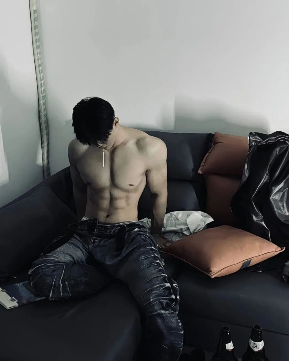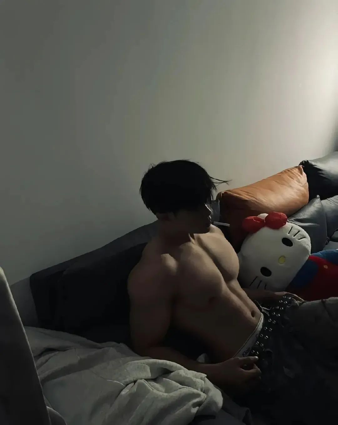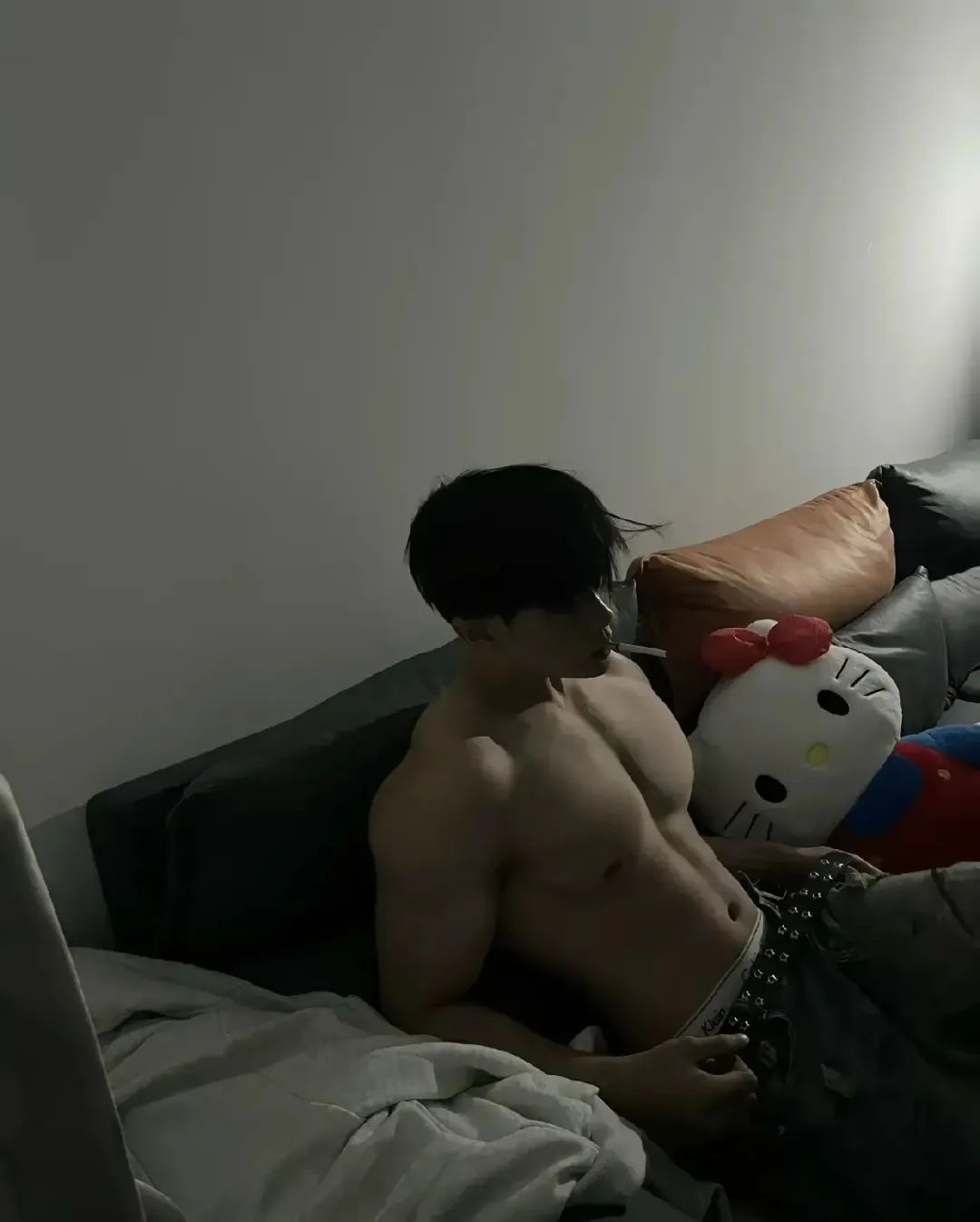 他总能找到最能展现自己身材优势的角度,把那超级 nice 的身材线条展露无遗,不管是紧实的手臂肌肉,还是那若隐若现的人鱼线,都在绝佳的角度下变得更加诱人,真的是没谁能抵抗得了啊。