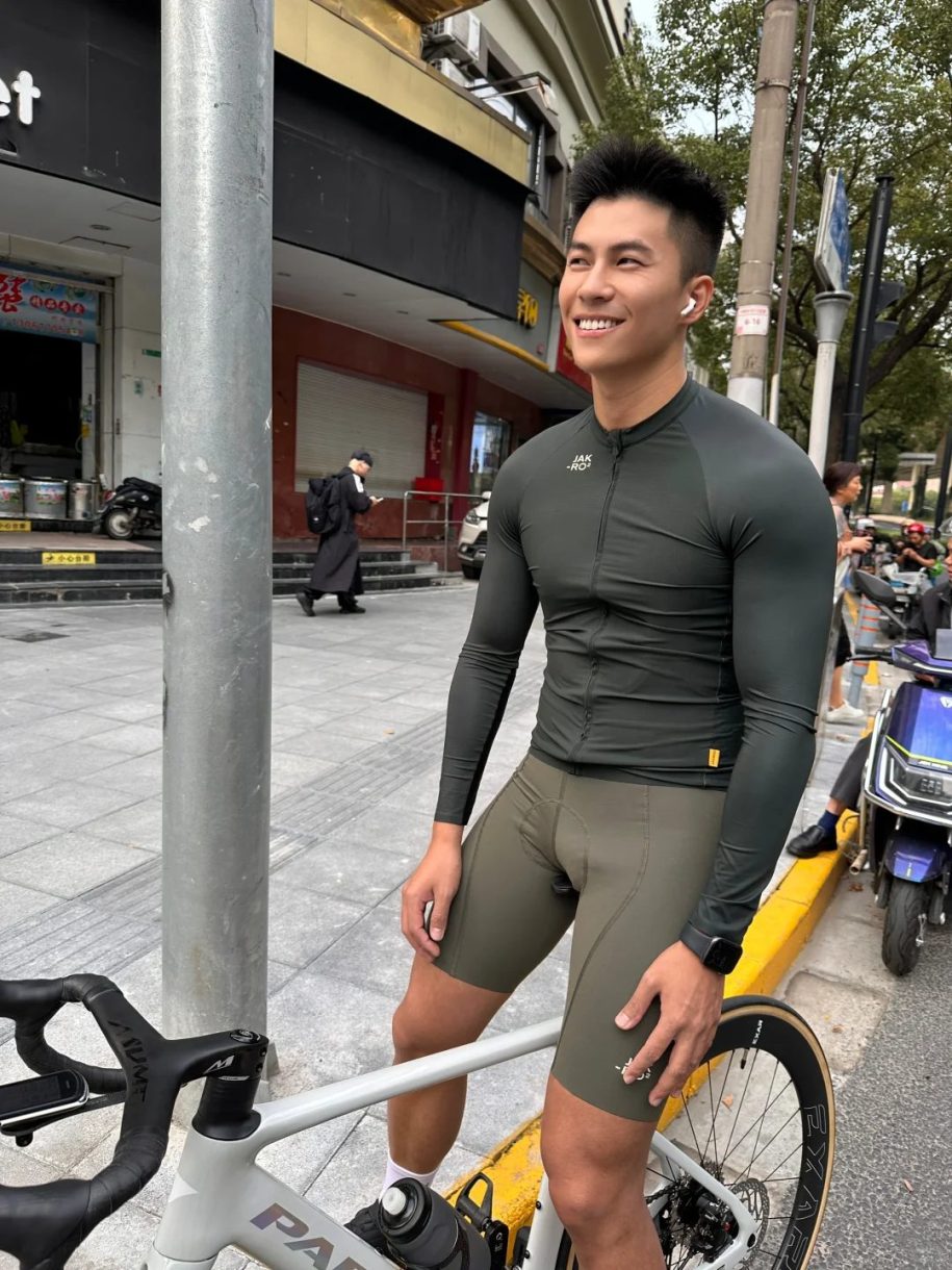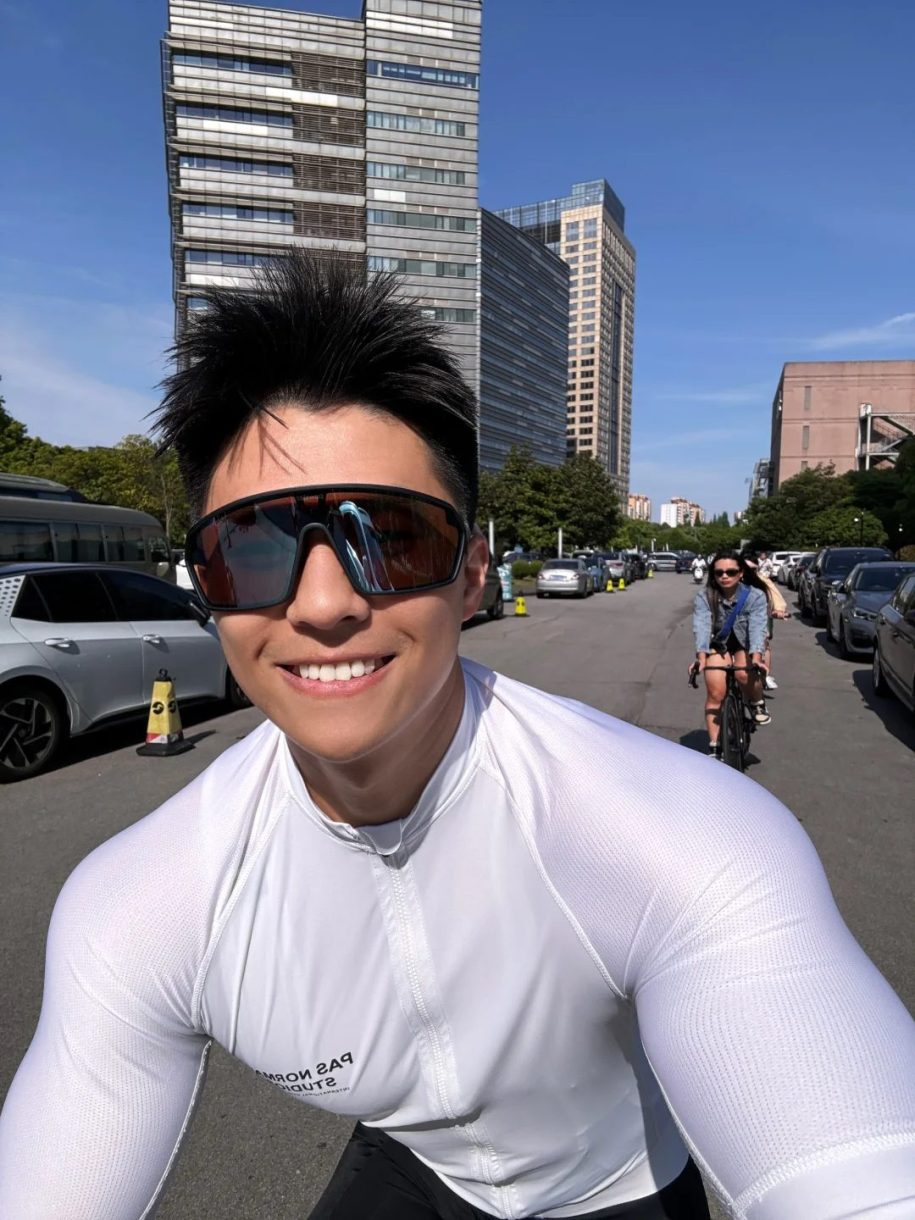 除了健身,小哥哥最近迷上了骑行。他在小红书上分享了不少骑行日常,从上海街头到郊外的绿道,都留下了他的骑行身影。他穿着紧身骑行服的照片更是引发热议,骑行服贴身的设计把他精壮的肌肉线条完美展现,让人感叹“这是艺术吧”!