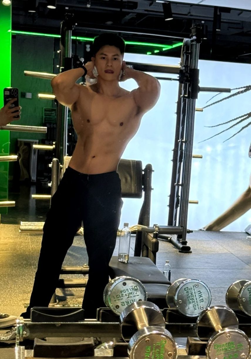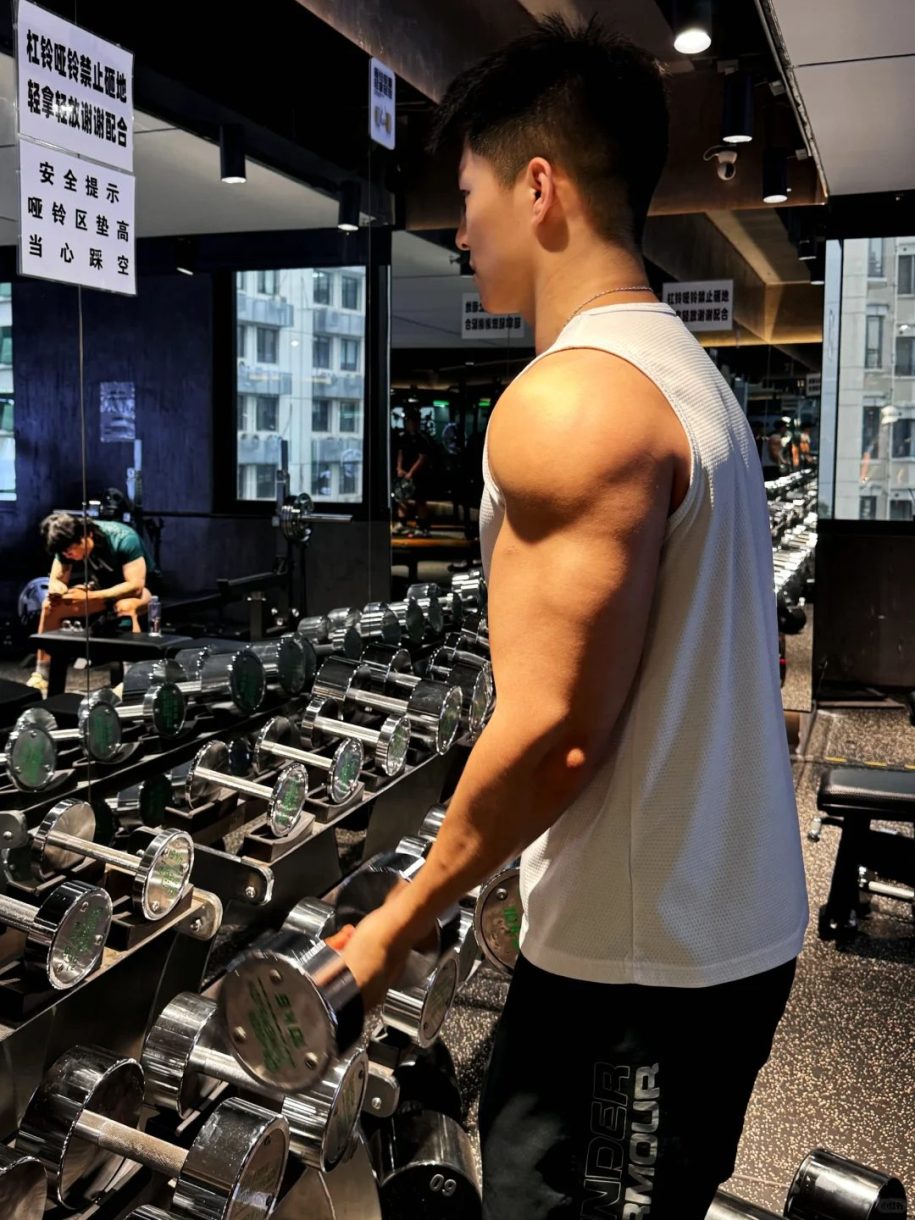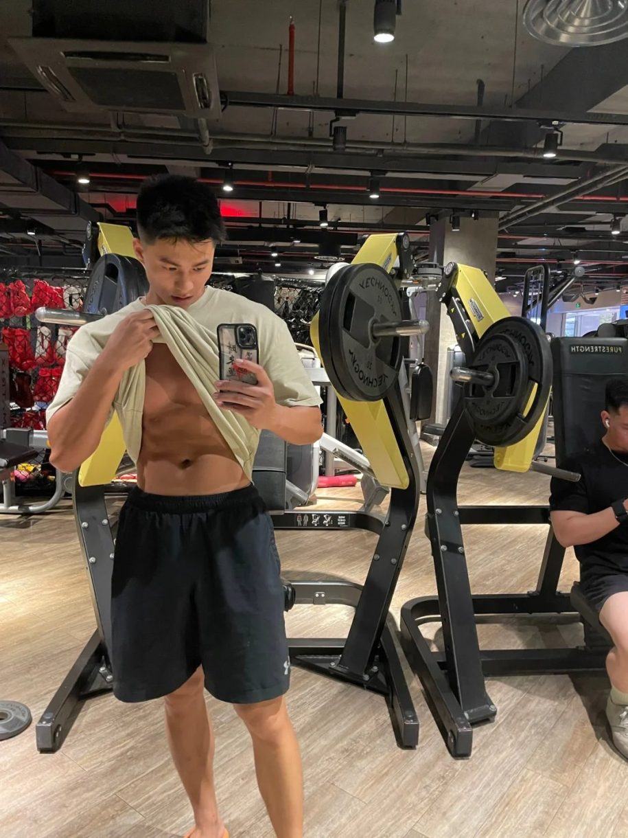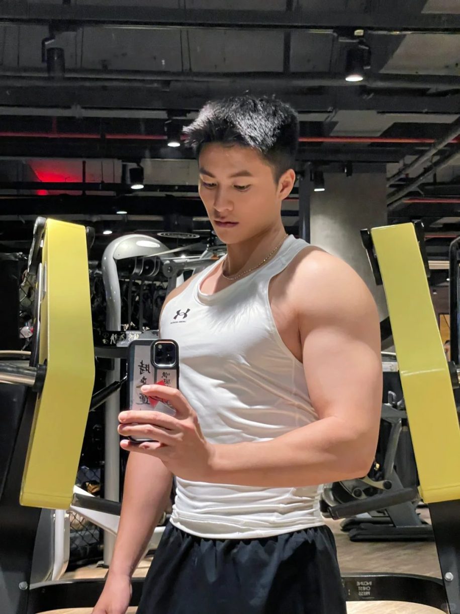 小哥哥的脂包肌维度很出色,尤其是手臂和肩背部,饱满而结实,每一次举铁训练后都让人忍不住多看几眼。而他的腹肌,虽然不是“脱水式”的极限线条,却也隐约可见硬朗的轮廓,这种自然的肌肉状态反而更贴近普通人的健身目标。