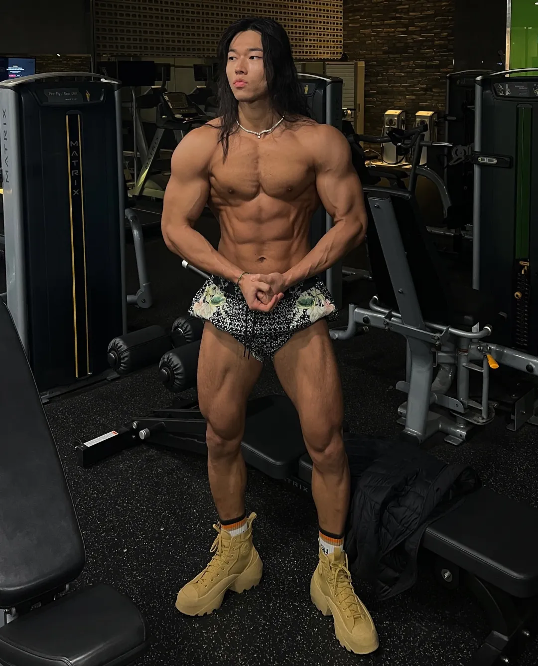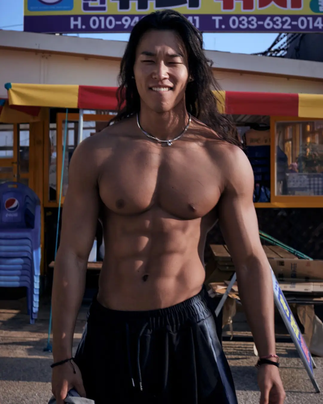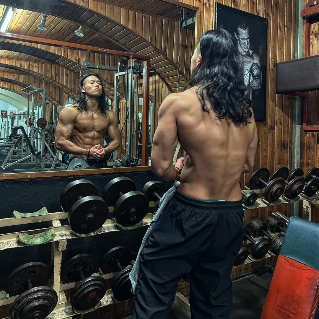 这位狼狗系猛男拥有街头酷盖的长发、粗犷性格和雕刻肌肉,皮肤呈健康的小麦色。他高中毕业后释放天性,投身健身并成为vlogger。他的视频展示高效训练方法和幽默风格,即使旅行也坚持徒手健身。他的腹肌清晰,通过悬吊抬腿锻炼出深壑子弹肌,每次训练后坚持高抬腿动作增强腹直肌。杠铃弯举等力量训练强化背肌和肩部线条,实现黄金倒三角身材。日常徒手训练增强大腿力量感,胸肌和腿部线条同样吸引人。他不局限于传统器械,融入各种徒手训练方法。即使旅行也完成训练计划,是健身与自由生活的典范。