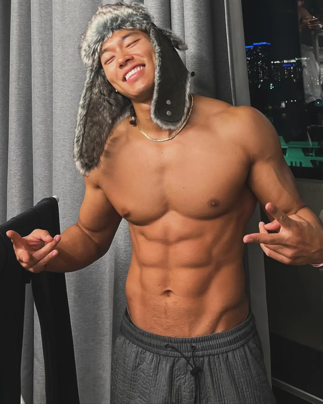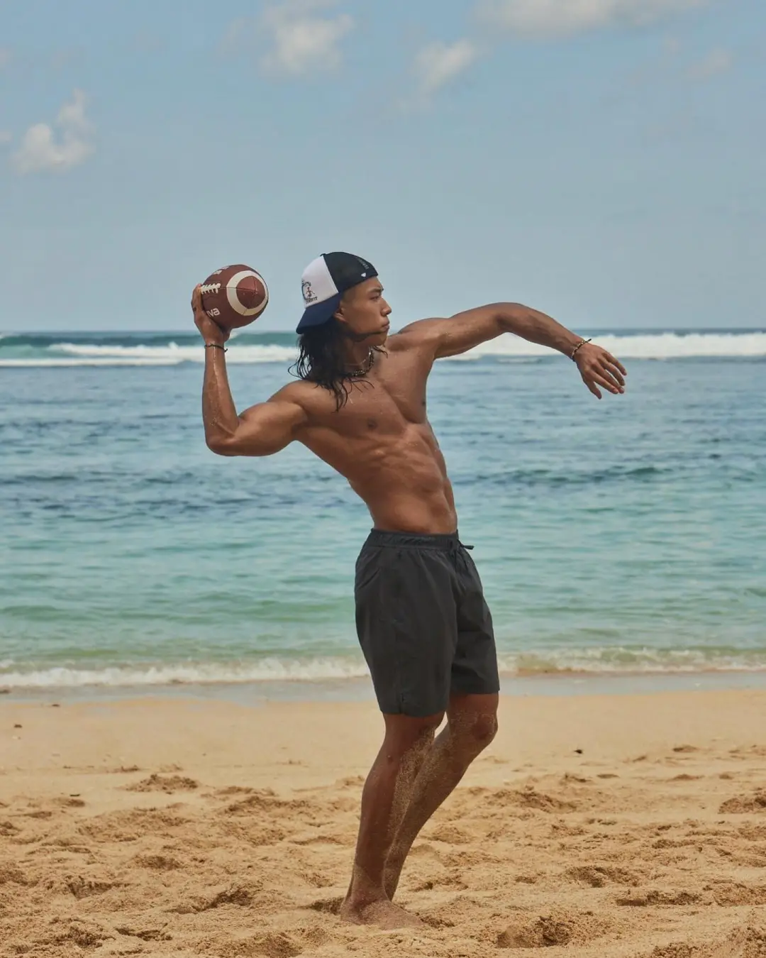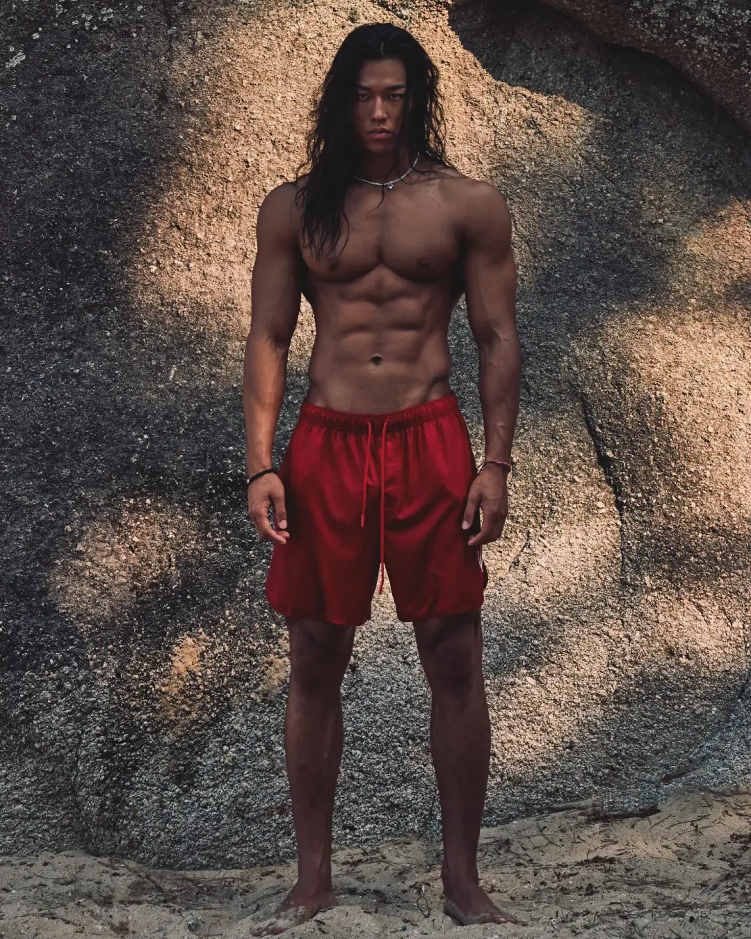 这位狼狗系猛男拥有街头酷盖的长发、粗犷性格和雕刻肌肉,皮肤呈健康的小麦色。他高中毕业后释放天性,投身健身并成为vlogger。他的视频展示高效训练方法和幽默风格,即使旅行也坚持徒手健身。他的腹肌清晰,通过悬吊抬腿锻炼出深壑子弹肌,每次训练后坚持高抬腿动作增强腹直肌。杠铃弯举等力量训练强化背肌和肩部线条,实现黄金倒三角身材。日常徒手训练增强大腿力量感,胸肌和腿部线条同样吸引人。他不局限于传统器械,融入各种徒手训练方法。即使旅行也完成训练计划,是健身与自由生活的典范。