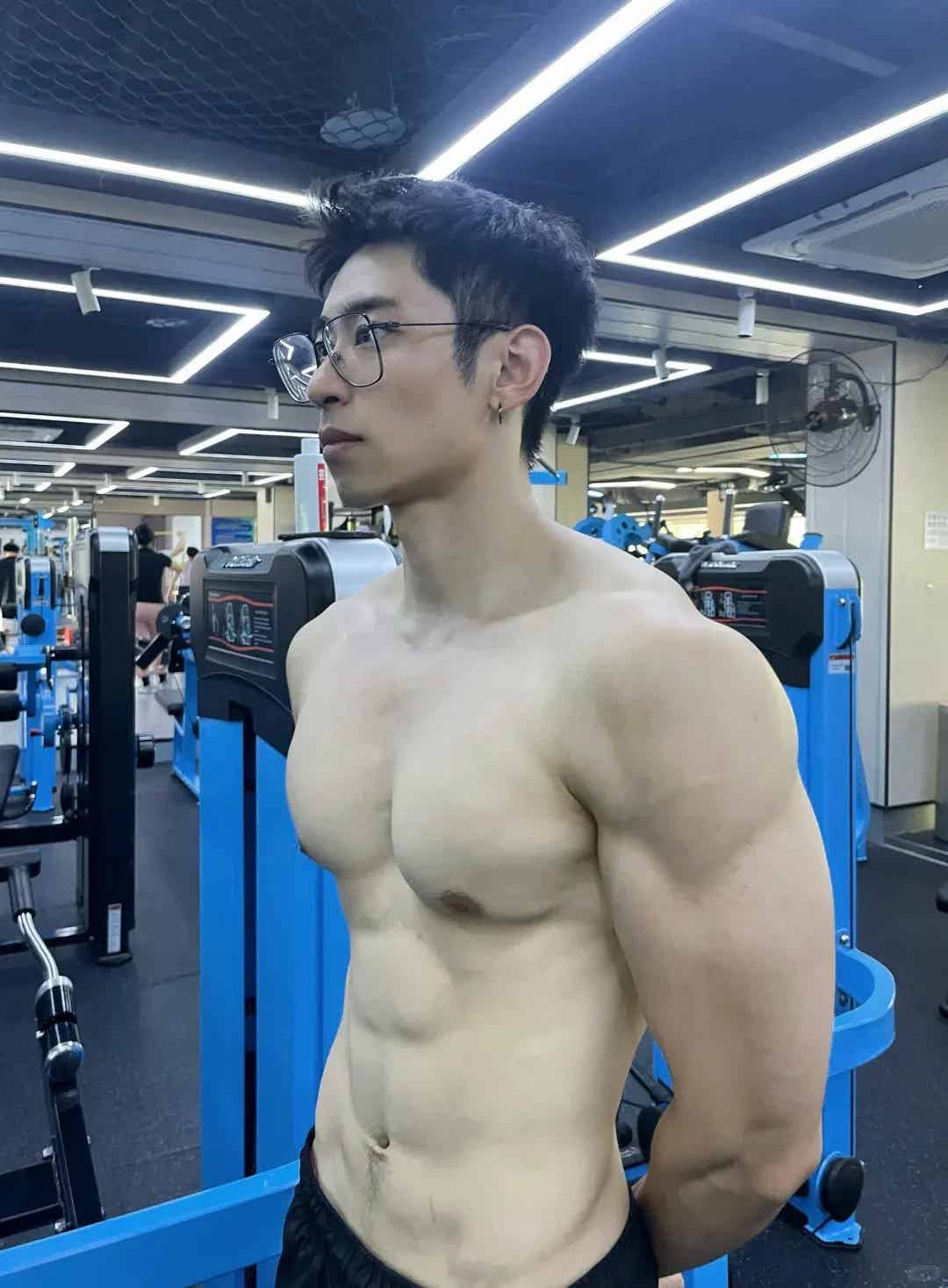 小哥不光身材练得好,颜值也好帅。,他戴着眼镜的样子看起来十分斯文,虽然有满满的少年感,但又有成熟男人的魅力。斯文眼镜男,真的是长在了很多人的审美点上。