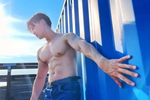 他的胸肌也非常饱满结实。 手臂上的肌肉简直是秒杀所有人的眼球。