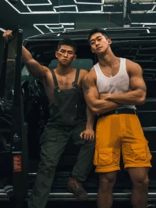 在这里我要问下我的粉丝了,你们谁的身材有这样性感呀,可以的话小武我想看看,嘿嘿嘿,是不是我想的太多了,但是我相信我的粉丝大多数都是对这样的身材毫无抵抗力的了,反正小武我是的,毕竟这样的帅哥是非常招人喜欢的啦!估计有很多粉丝还要说要找这样的百变型男修车啦!不得不说摄影师的摄影技术也是非常棒的了!