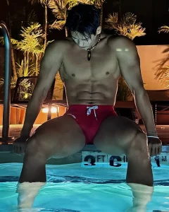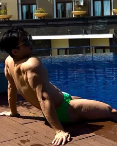 为什么绿色泳裤这么适合他?小哥选择绿色作为泳裤的颜色,真的是非常有心机!绿色是夏天里非常清新的颜色,搭配上他的黑皮肤,反而有一种独特的视觉反差感,让他整个人显得更加突出。那种健康、自信的氛围,仿佛让人一秒就能想到夏日的海滩、热情的阳光和冰爽的海风。
