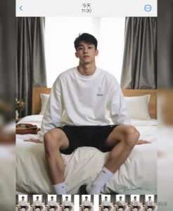还有这张,这个照片感觉有点过去亲近了哈哈哈哈哈。要不是离得这么近啊!阿泽都忍不住从这个短裤的缝隙里使劲的瞅了。这真的合适吗啊哈哈哈哈哈。尤其是这个正中间的大包,看了一下真的有点东西哦,不愧是男高,颜值身材肌肉通通都有。