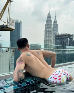 除了游泳,他也很爱记录健身带来的身体变化。早起去健身房练肩,是他旅行中的日常之一。他自己也常常调侃道:“最近要胖成猪了,见人不如游泳。”但从他的照片来看,无论是游泳后的健康肤色,还是健身房里的结实线条,都展现了自律与热爱结合后的成果。
