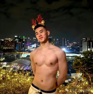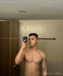 赤着上身,又白又嫩的肌肤在阳光下泛着诱人的光泽,每一块肌肉都饱满紧实,线条硬朗又流畅,像是被大师精心雕琢过的艺术品。宽肩窄腰,肱二头肌隆起,还有若隐若现的腹肌,这身材比例堪称完美。