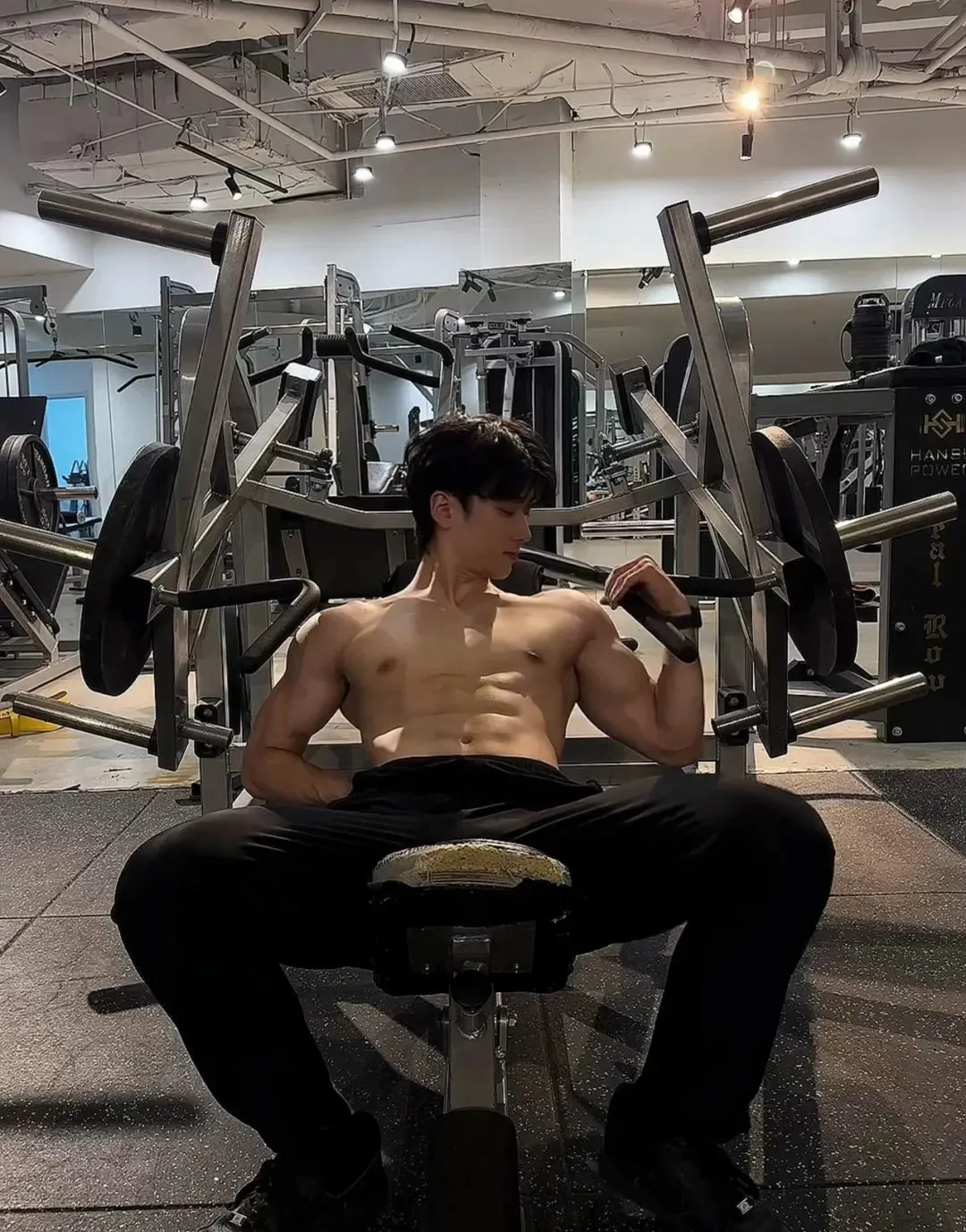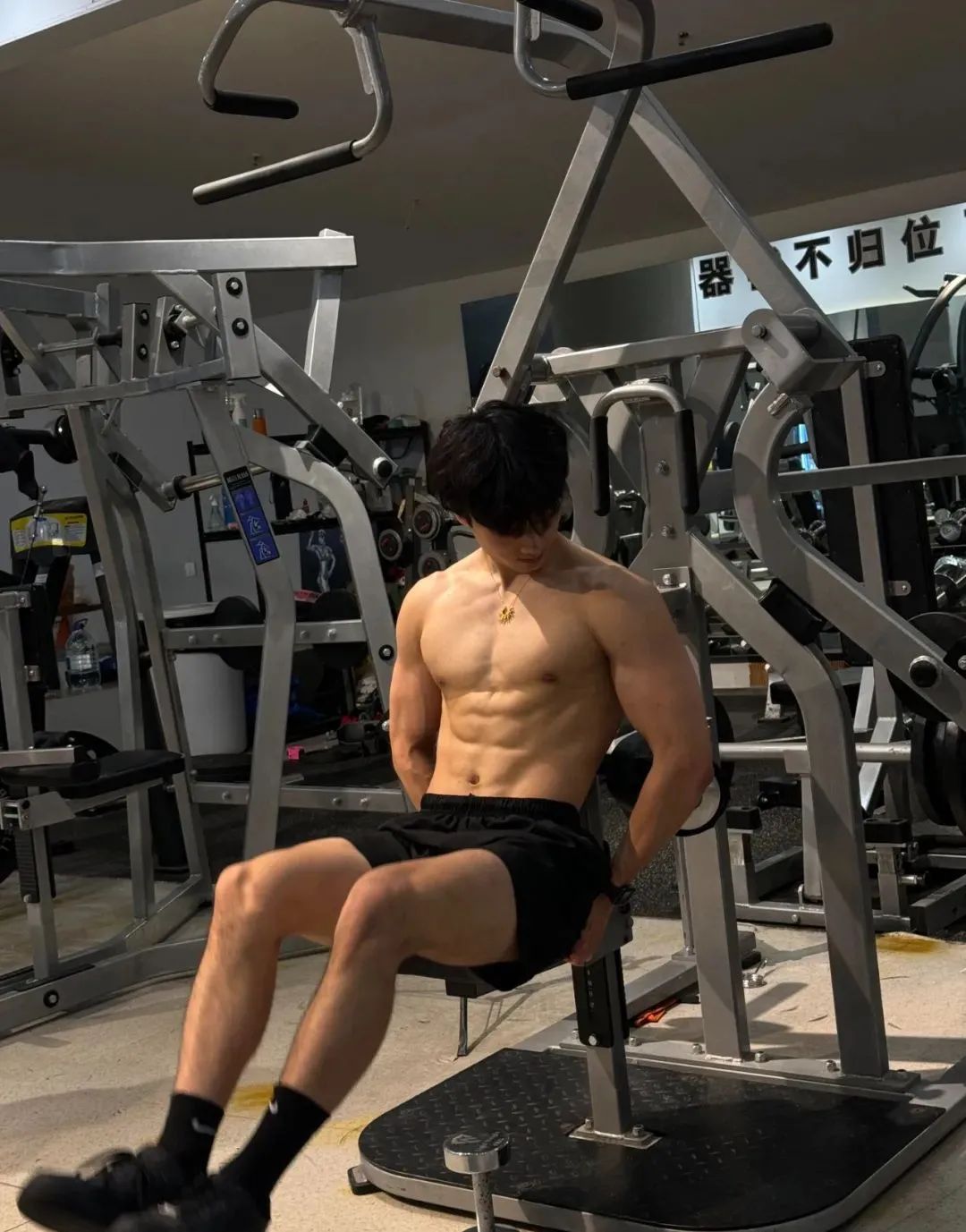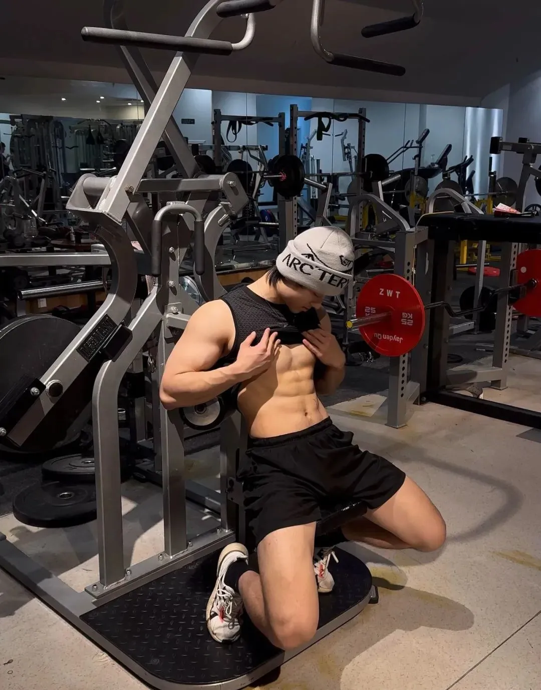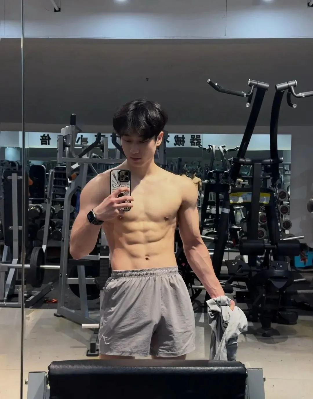 他认真健身的样子,汗水顺着脸颊滑落,浸湿衣衫,打湿的头发随意贴在额头,浑身散发着热气,荷尔蒙爆棚。他的每一个动作都充满力量感,每一次肌肉的收缩舒张,都彰显着努力与坚持。一看就是那种阳光、努力又上进的男孩子,谁能不心动?