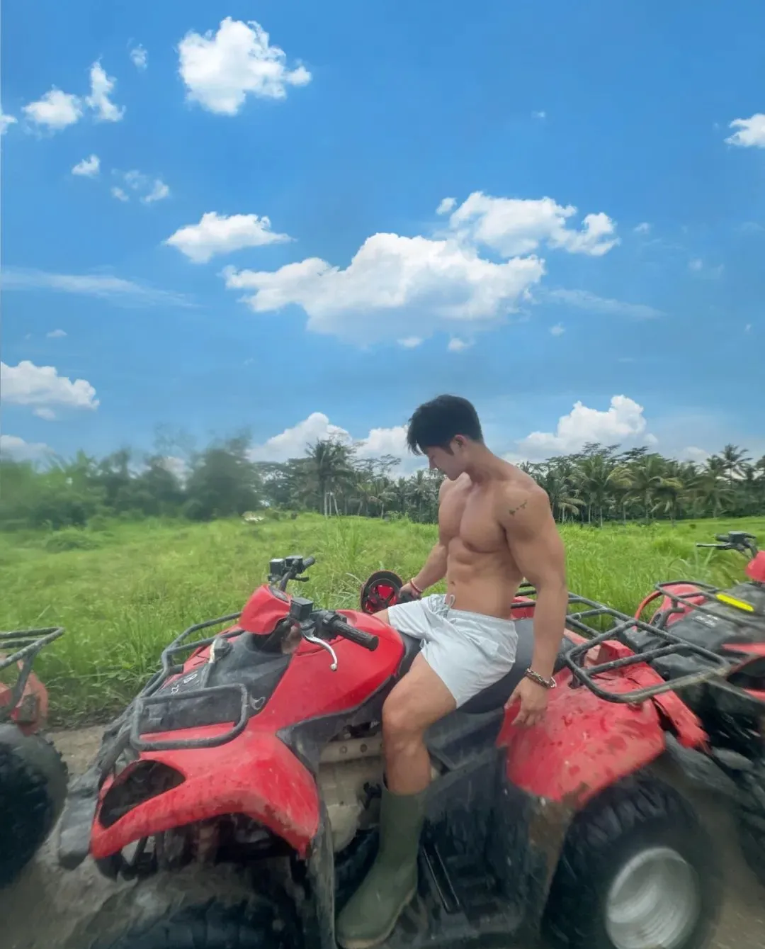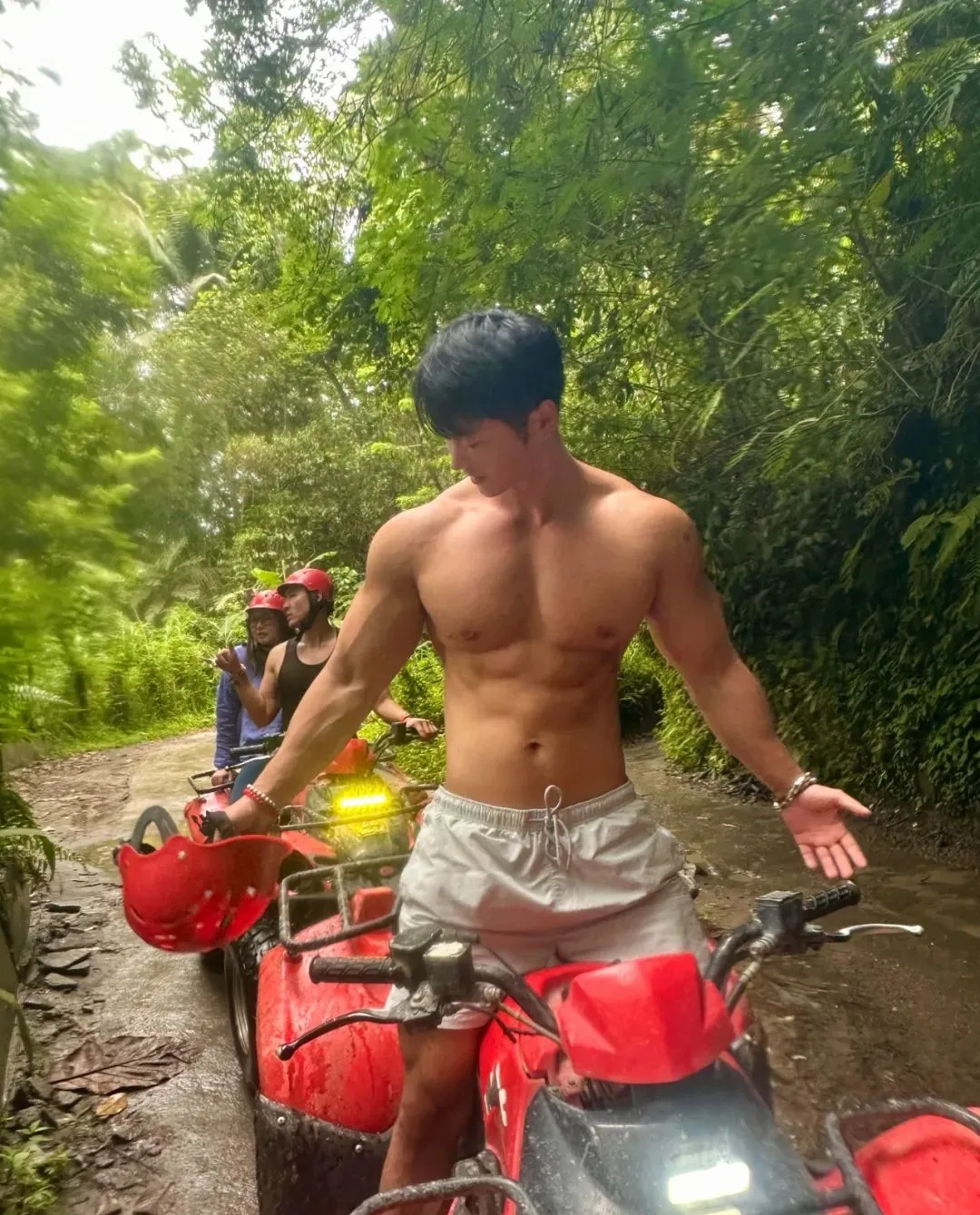 宽肩窄腰大长腿的完美比例,让他无论走到哪里都是焦点。而他在印尼的旅行日常更是精彩,骑着铁骑穿梭在各个美景之间,一边享受着自由的风,一边还不忘展示自己傲人的肌肉身材。