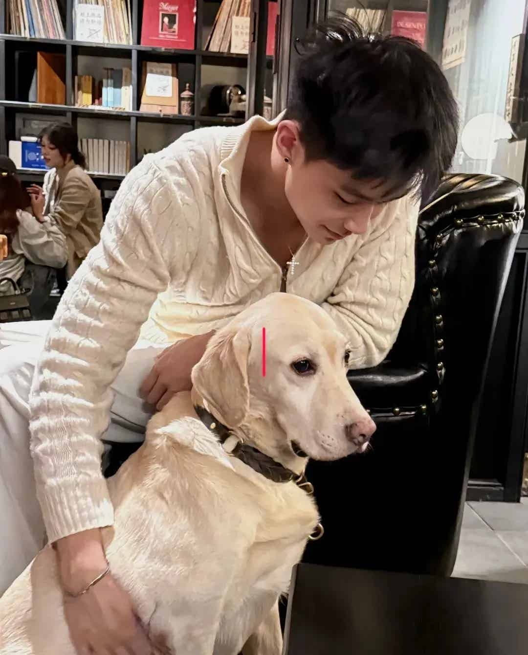 小哥哥特别喜欢小动物,摸摸狗狗抱抱狗狗!