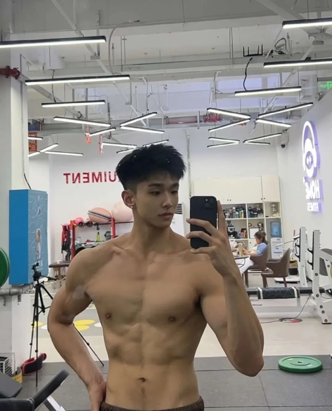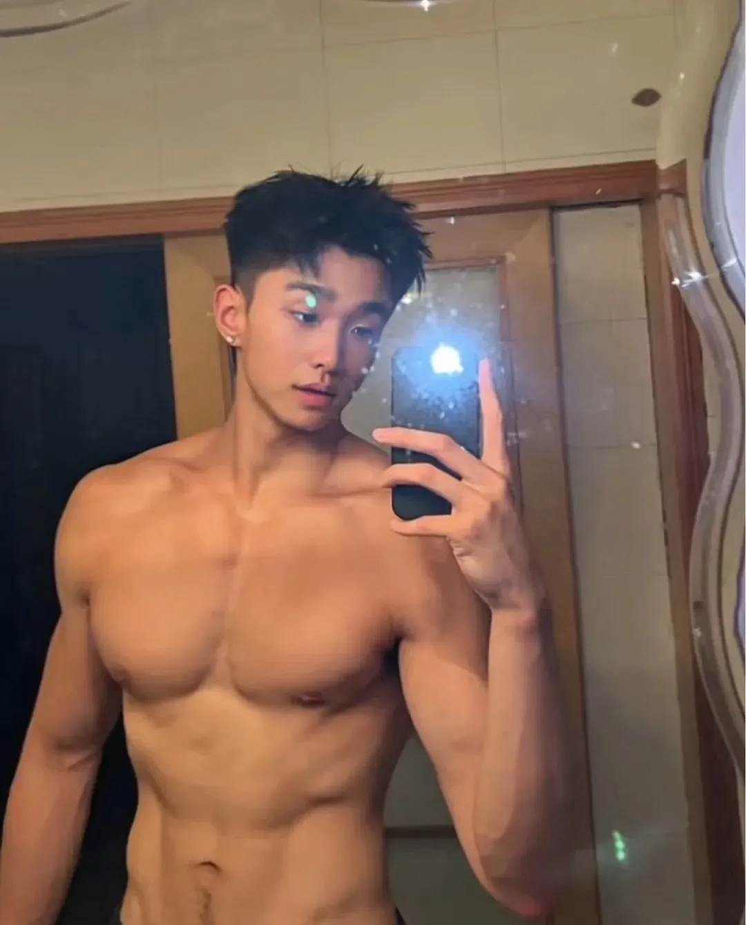 看看他的身材,宽厚的肩膀能扛起整个世界,胸肌饱满得像随时要撑破衣服,腹肌线条清晰可见,每一块都在诉说着自律与坚持。