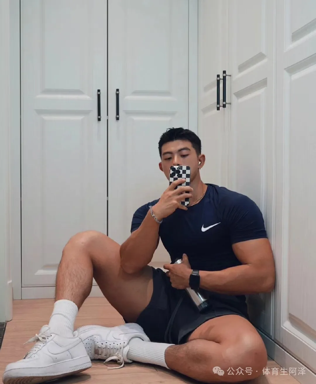 就像这个,要是现实中见到了,阿泽绝对会流口水的哈哈哈。你根本说不出他的一个缺点。首先看颜值,这个颜值有什么可以挑剔的吗?标准的硬汉高颜值啊!尤其是那个脸棱角分明。而且又不显得瘦,真的绝了,长在了阿泽的心巴上啊哈哈哈。还有这个黑皮太完美了。理想中的黑皮就是这样了,再加上这个可以夹死人的大粗腿。还有这个力量感十足的胳膊,那真的只能说一句哇塞了啊哈哈啊哈。真的好想吃啊!