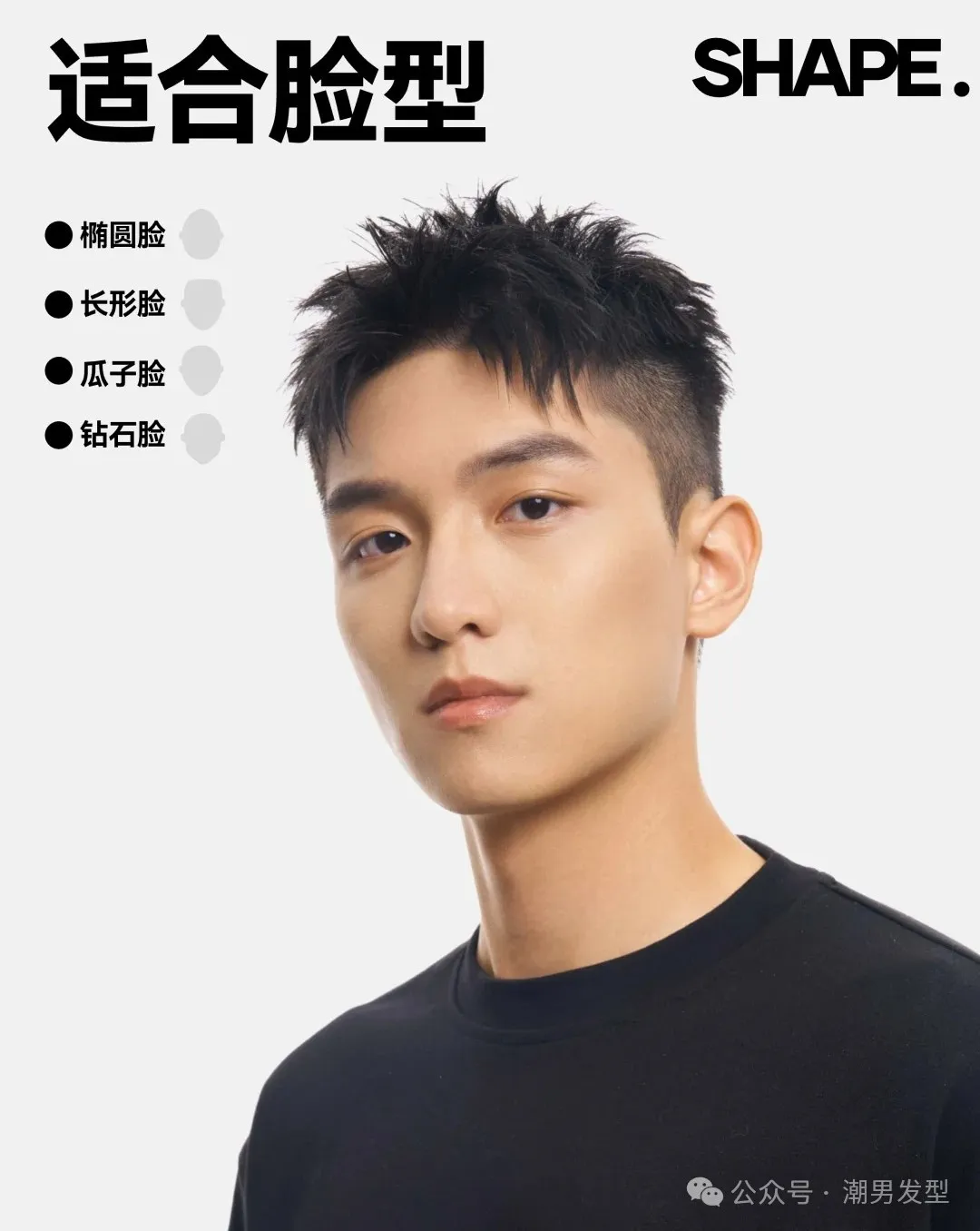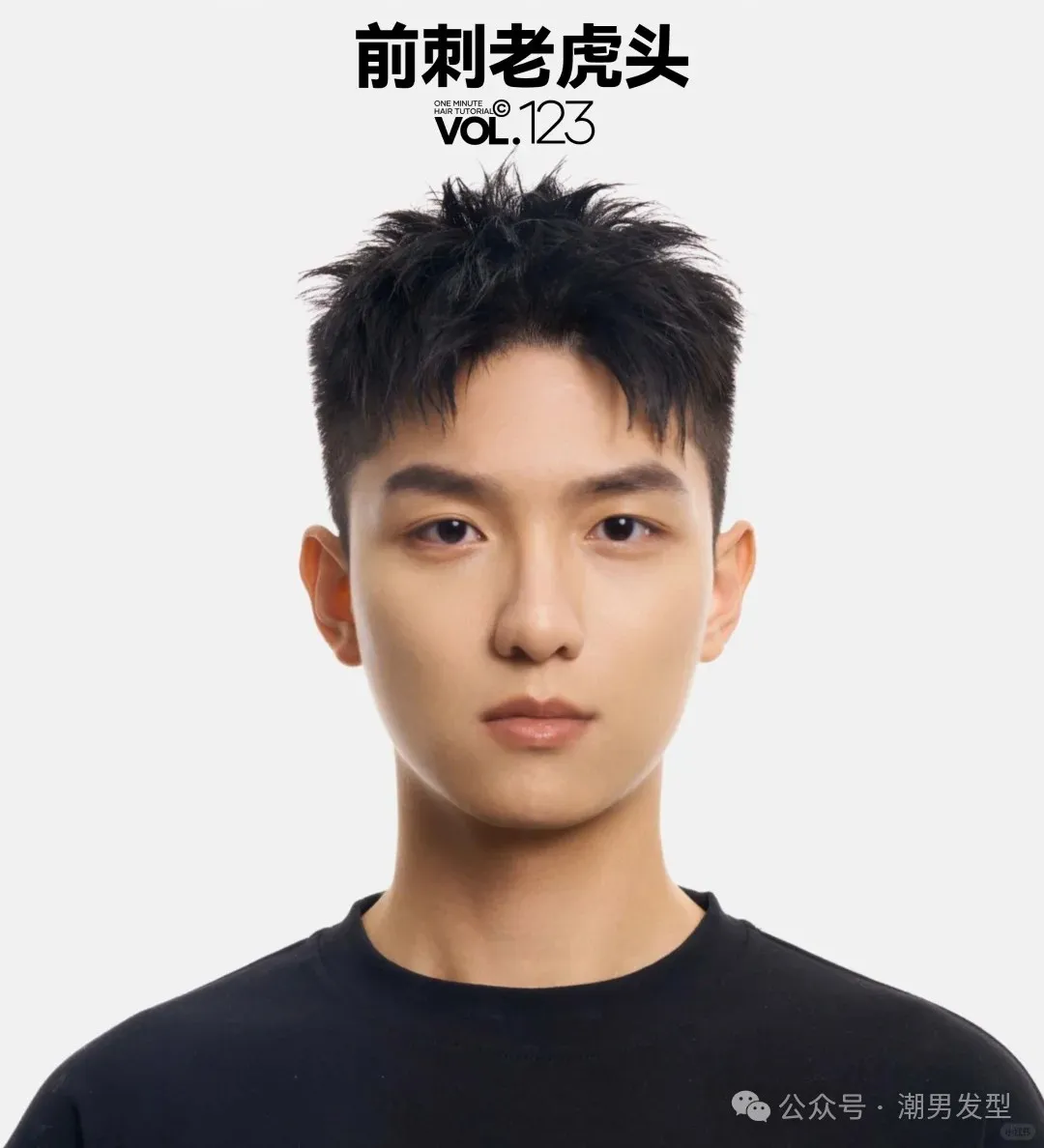 本期推荐一款百搭不挑人的「前刺老虎头」,发型整体立体蓬松,视觉抬高颅顶,适合大多数亚洲男生脸型,日常打理简单,推荐给中短发男生尝试!