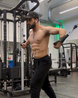 动作4高位到低位的缆绳飞鸟完成8~10次 ⏰每完成一个动作休息30秒,以上动作全部完成为一轮;建议做3轮,每轮之间休息60秒。
