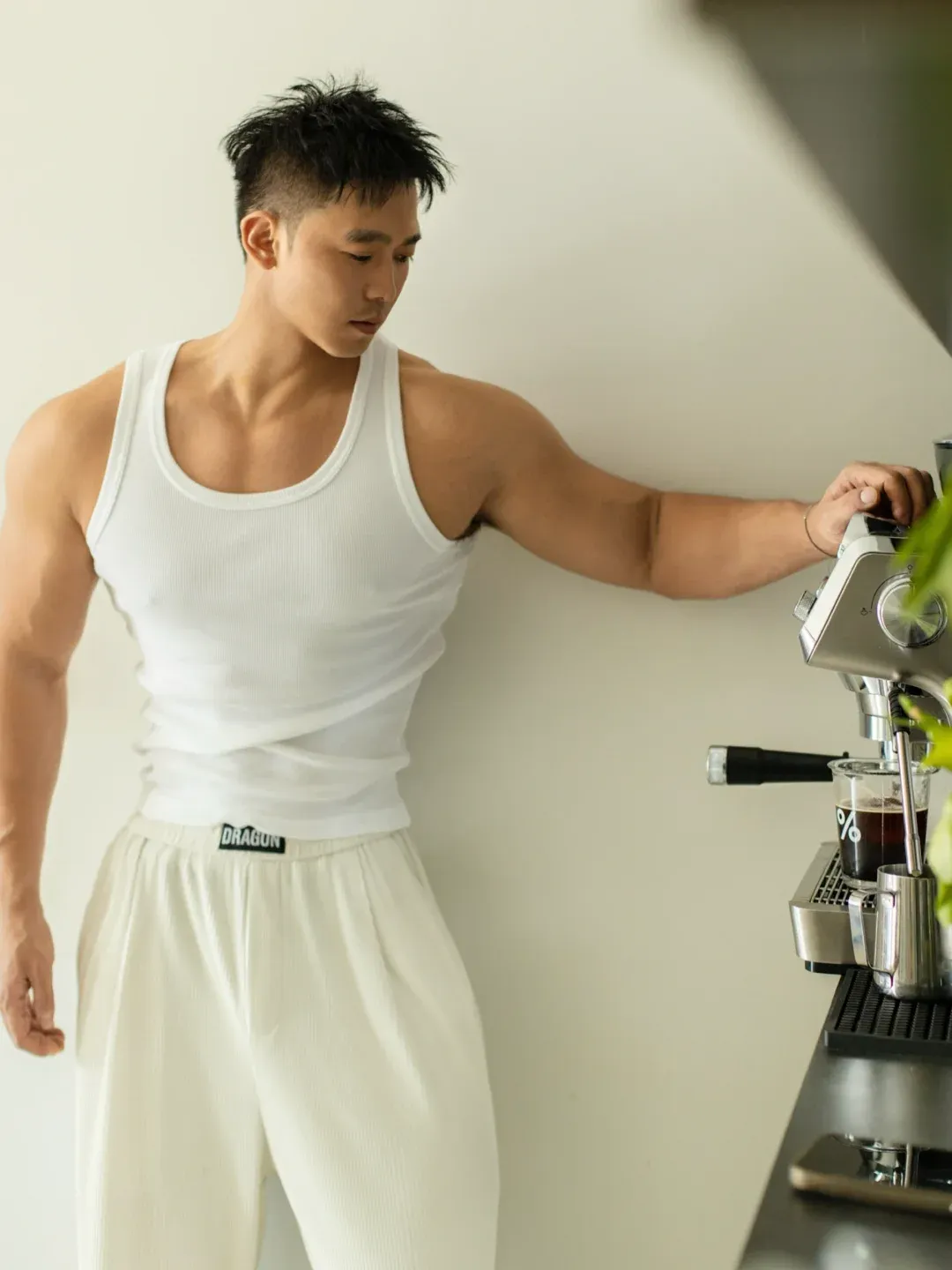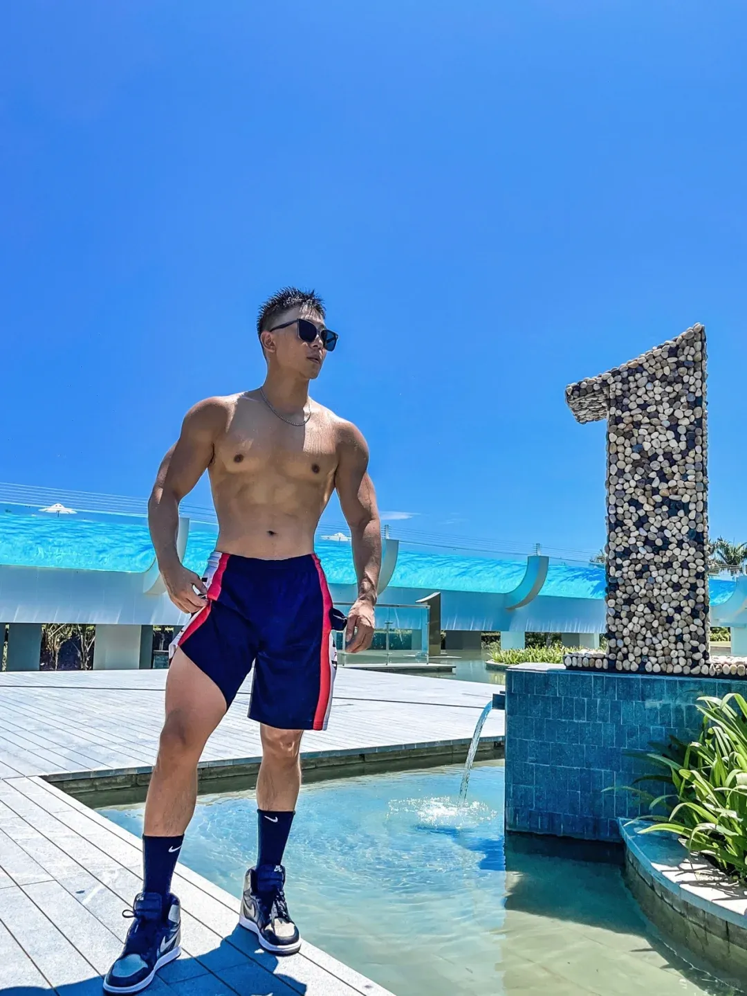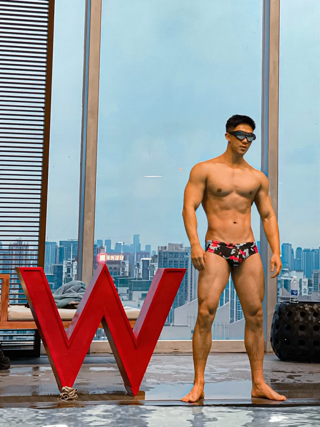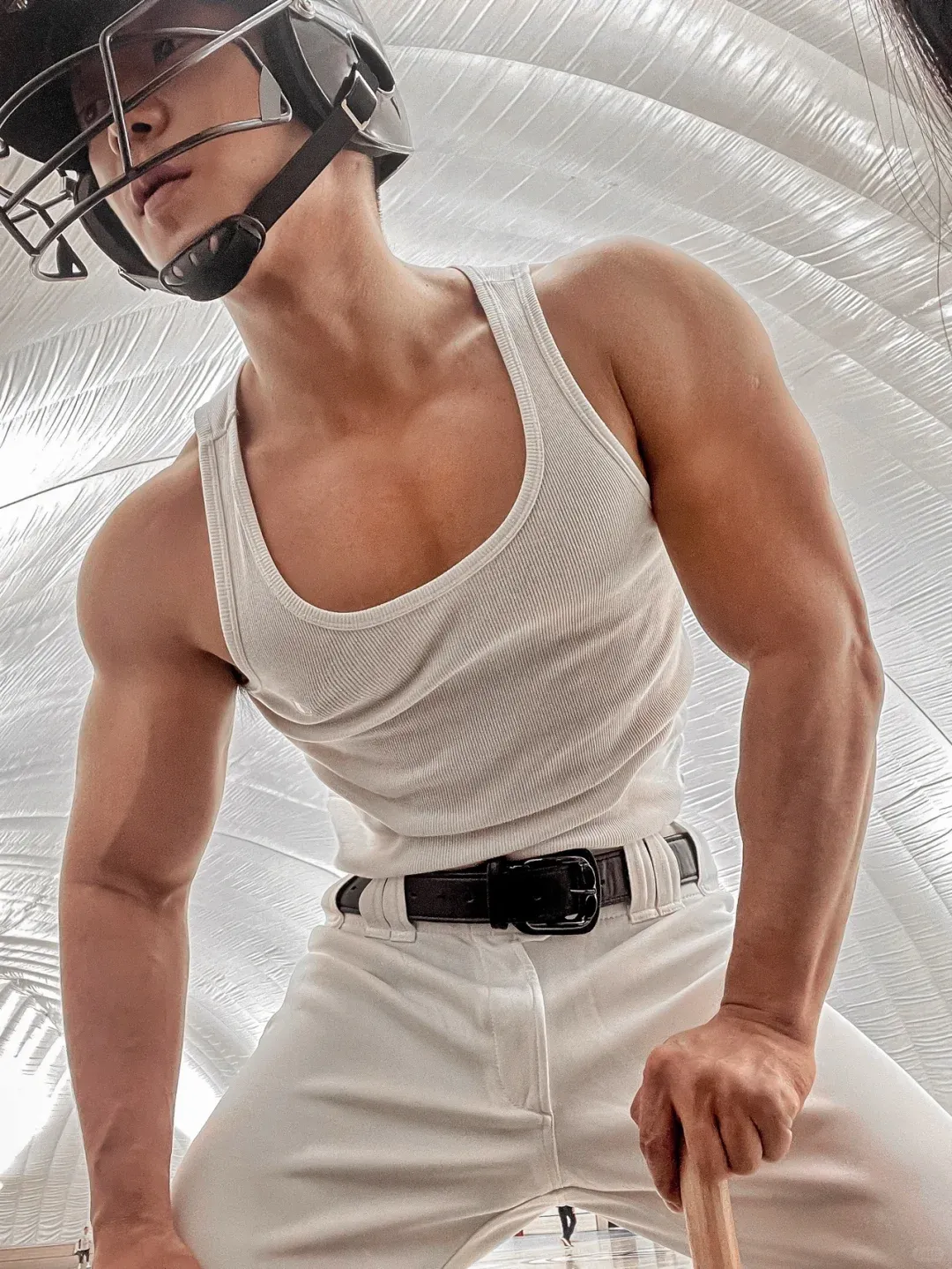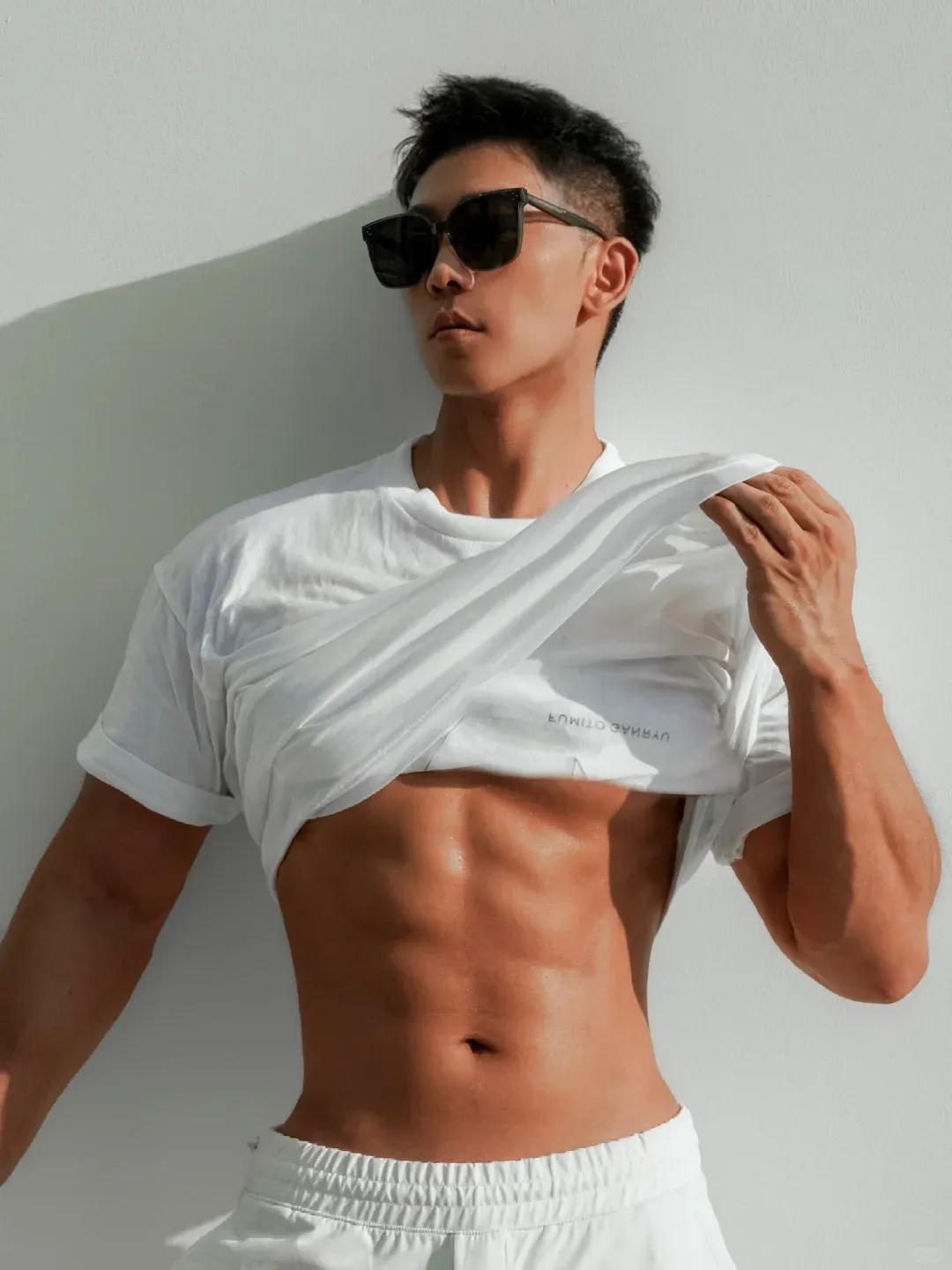 小哥哥的皮色是健康的小麦色,配上短发、宽肩、细腰以及厚实的肌肉和不高的体脂,应该算是很多人的理想型了。