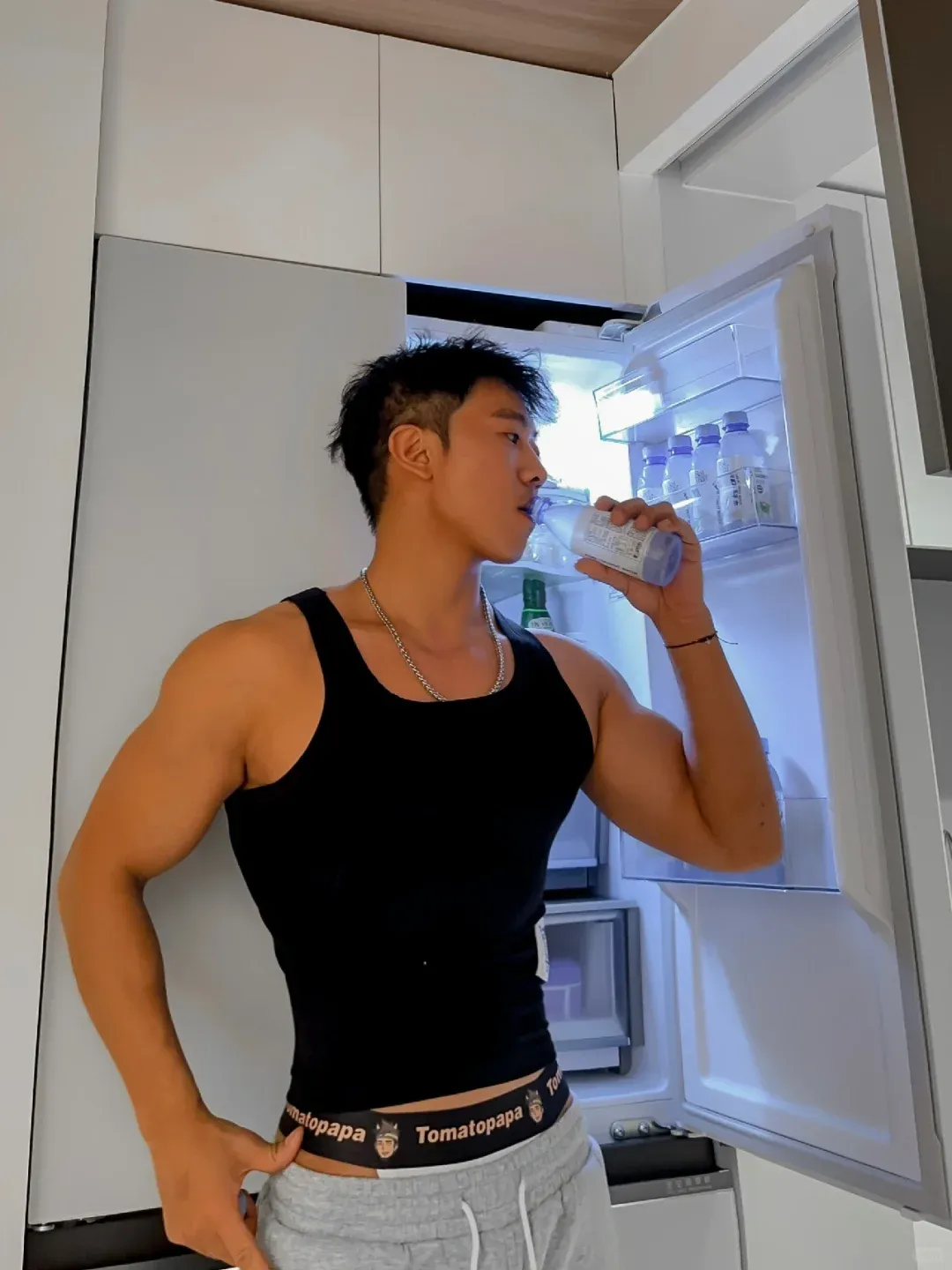 看他照片,小哥哥也是很大只的。他平时应该也没少花时间泡在健身房里。取得大块肌肉都是很不容易的,当然保持下去也是很不容易的。
