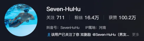 小哥哥在小红书上的昵称是Seven-HuHu,他的小红书号是 638032335。小哥哥在小红书上人气很旺,已经有 4.6 万的粉丝。而在抖音上,小哥哥同样活跃。他抖音的粉丝已经是六位数了,目前有 16.4 万的粉丝。小哥哥抖音上视频不少,喜欢的同学可以去抖音关注一波。小哥哥的抖音账号可以见下图。