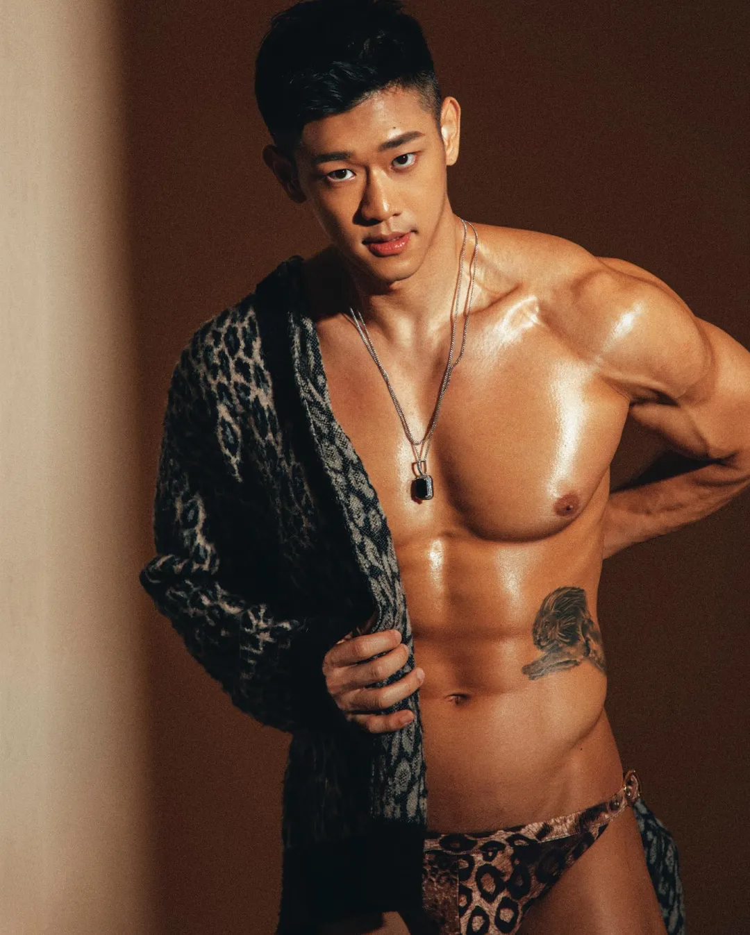 Leon 的身材可以说既让人羡慕,也让人好奇。他并不是那种欧美式的“超级大块头”,而是偏向亚洲人喜欢的匀称肌肉风格。但别看他的肌肉尺寸不算夸张,每一块都是经过精心雕琢的艺术品,尤其是那饱满的“菠萝胸”,真是怎么看都过瘾!