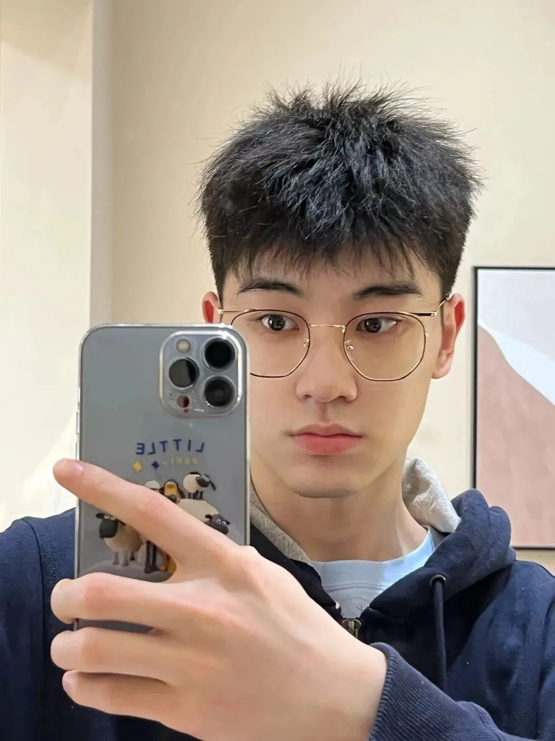 如果你的头发并没有那么粗硬,那么你可以打造一款更加自然的发型,比如上面这位小哥哥的微分碎盖发型,把头发剪碎打薄,刘海自然垂下,没有复杂的造型,也没有高难度的打理方式,看起来非常减龄帅气,很适合二十岁左右的男孩子来剪。第3款:寸头发型