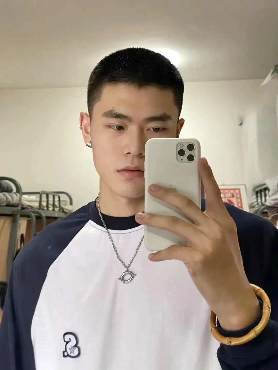 对于咱们中国男生来说,寸头发型绝对是非常百搭的一款造型,无论你多少岁都可以剪。寸头发型也是一款极简的发型,把三面修剪得干干净净,顶区稍稍留长,和侧边对比更有层次感,整体造型简约帅气,大家趁过年之前赶紧剪起来吧!