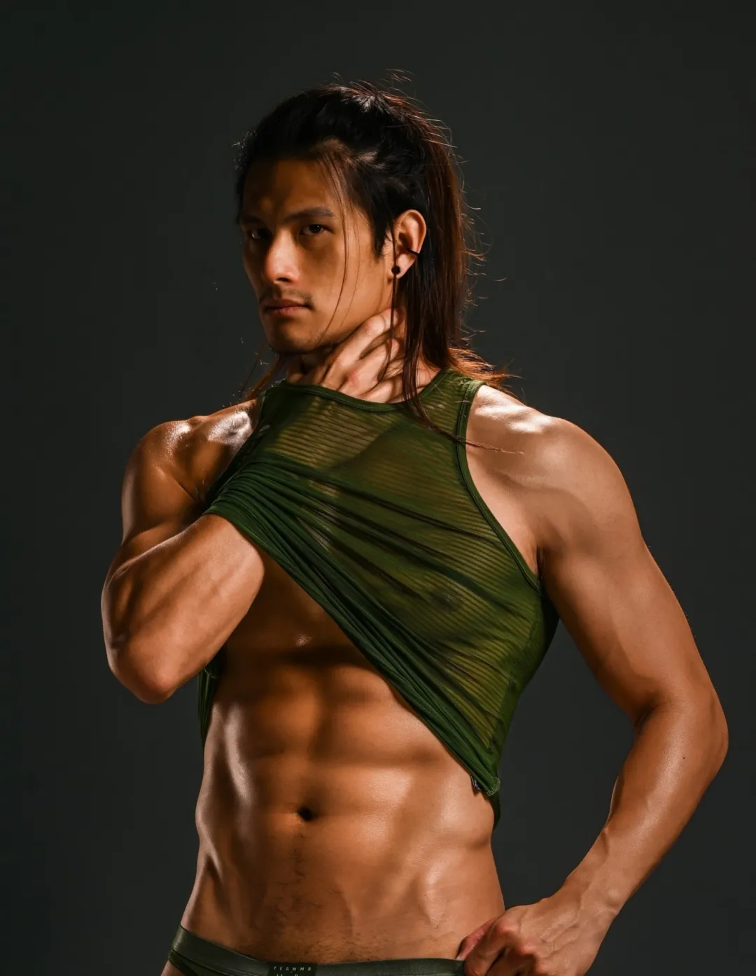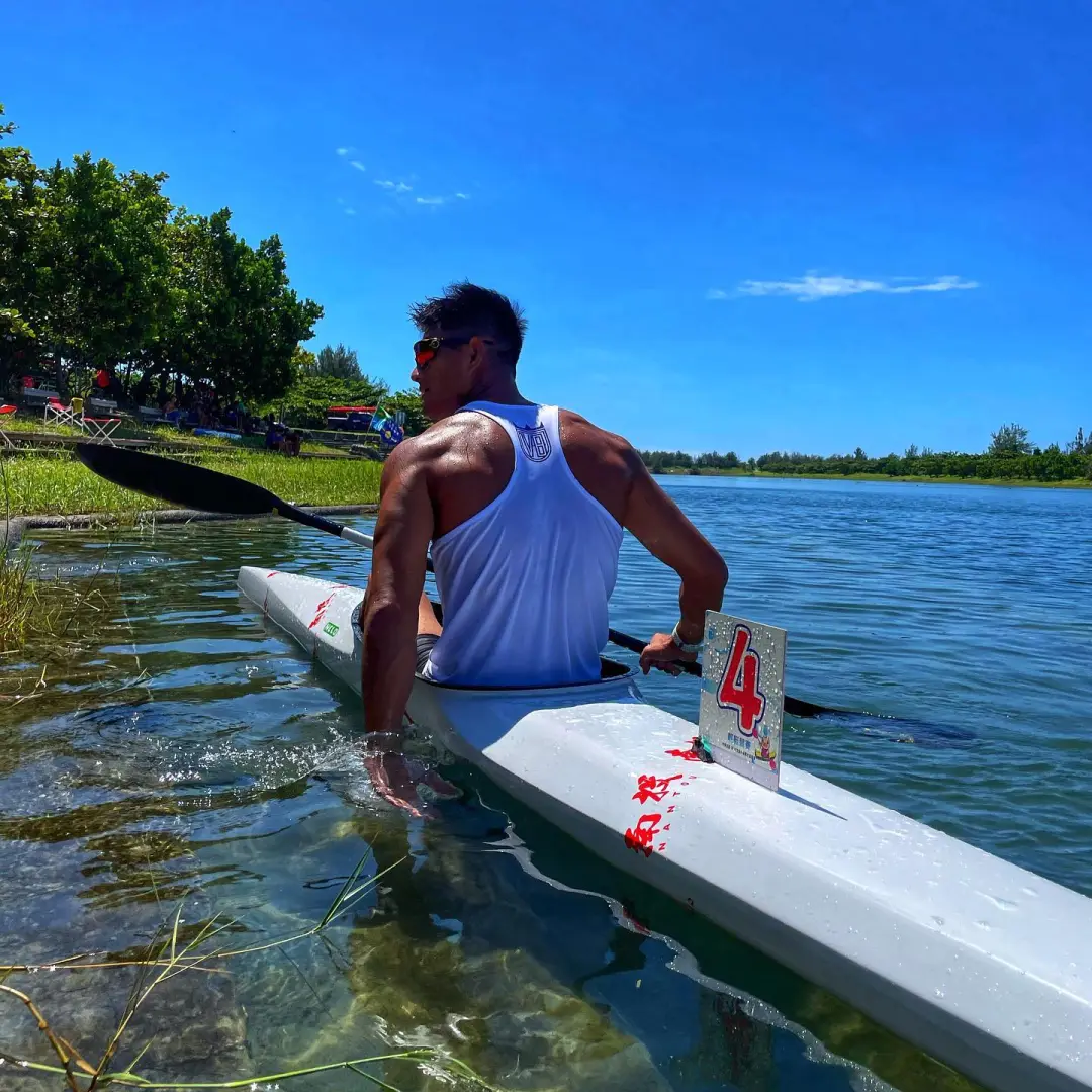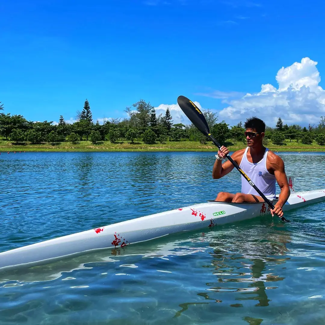 作为一个长期从事水上运动的专业运动员,他原住民的野性长发随着运动跃动,简直令人血脉喷张,他的皮肤被阳光和水汽洗礼成了那种黝黑迷人的色泽。划艇后,手臂上的肌肉线条清晰可见,每一次划水都好像都能撕裂空气,充满了爆发力和力量感。他身上的肌肉撕裂,荷尔蒙爆棚,坚毅的眼神让人有些怯步。