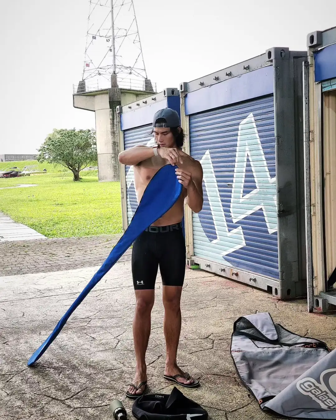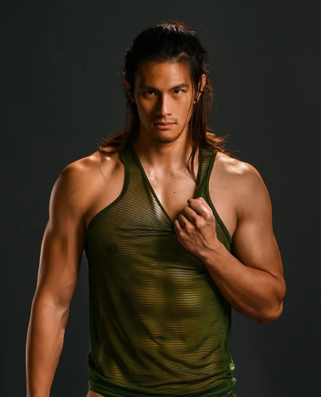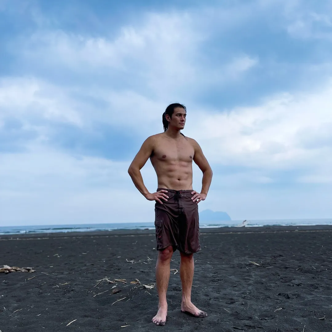 作为一个长期从事水上运动的专业运动员,他原住民的野性长发随着运动跃动,简直令人血脉喷张,他的皮肤被阳光和水汽洗礼成了那种黝黑迷人的色泽。划艇后,手臂上的肌肉线条清晰可见,每一次划水都好像都能撕裂空气,充满了爆发力和力量感。他身上的肌肉撕裂,荷尔蒙爆棚,坚毅的眼神让人有些怯步。
