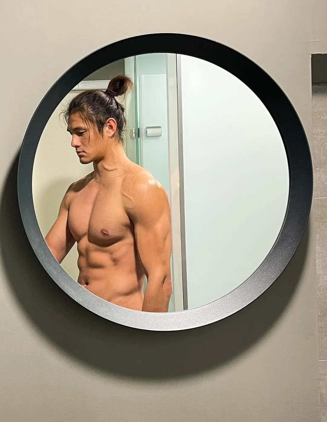 他的身体就像是漫画人物建模一样,浑身的腱子肉透露出运动员的强悍与阳刚,那种强劲的气场隔着屏幕都能让你感受到。