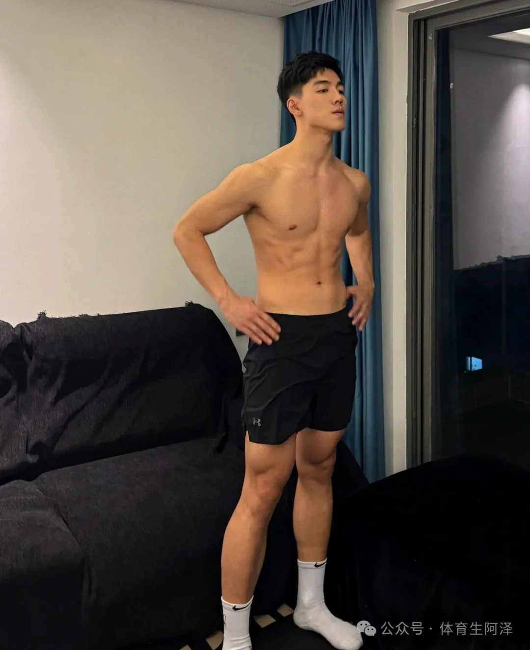 单单这个图片就让阿泽沉沦许久了。这个白袜大脚应该每个小男生都会喜欢把!要是这张图片发到社交媒体上面,那么估计评论区都不敢打开啊哈哈哈啊哈。一打开全世界都开春了哈哈哈哈。更别提这个硬汉般的身材和颜值了,这个身材有点像那种体脂率特别低的,腹肌也是一块一块的,虽然不是很大,但是感觉非常有力量感。尤其是这个粗壮的大腿,好像坐上去感受一下腿部的力量啊哈哈哈哈。