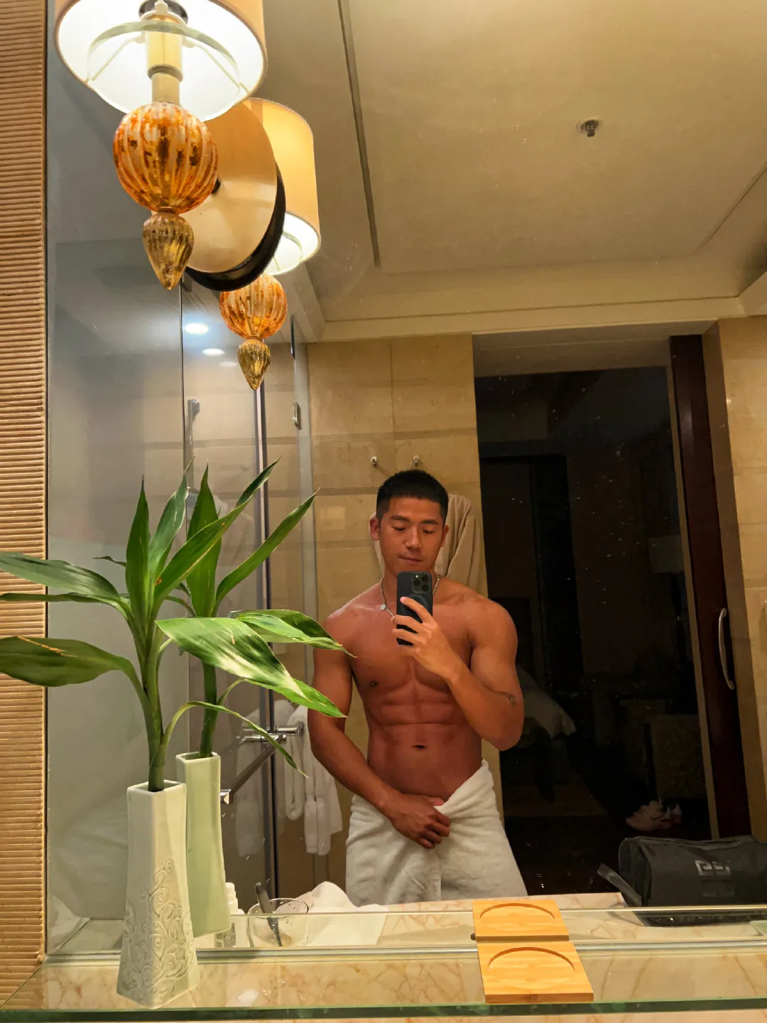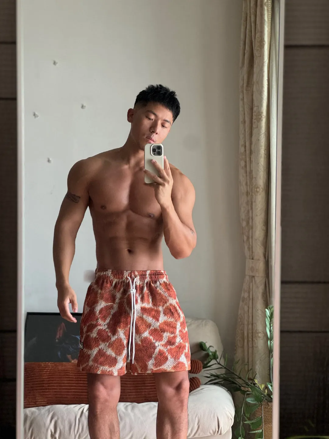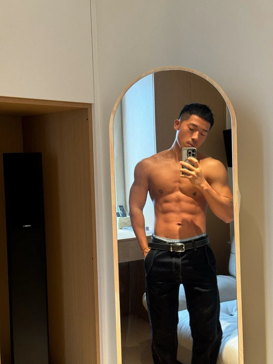 身材管理绝了,黑皮+腹肌太抓人他的第一眼杀伤力真的不容小觑。对比那种白净奶油风的男生,他的黑皮加腹肌路线特别有辨识度。腹肌块块分明,胸肌也相当扎实,但不会太过夸张,是那种穿衣显瘦、脱衣有肉的黄金比例。你能感受到,他的身体是经过系统训练的,不光有线条,还有力量感。他的X账号是@muchuanze