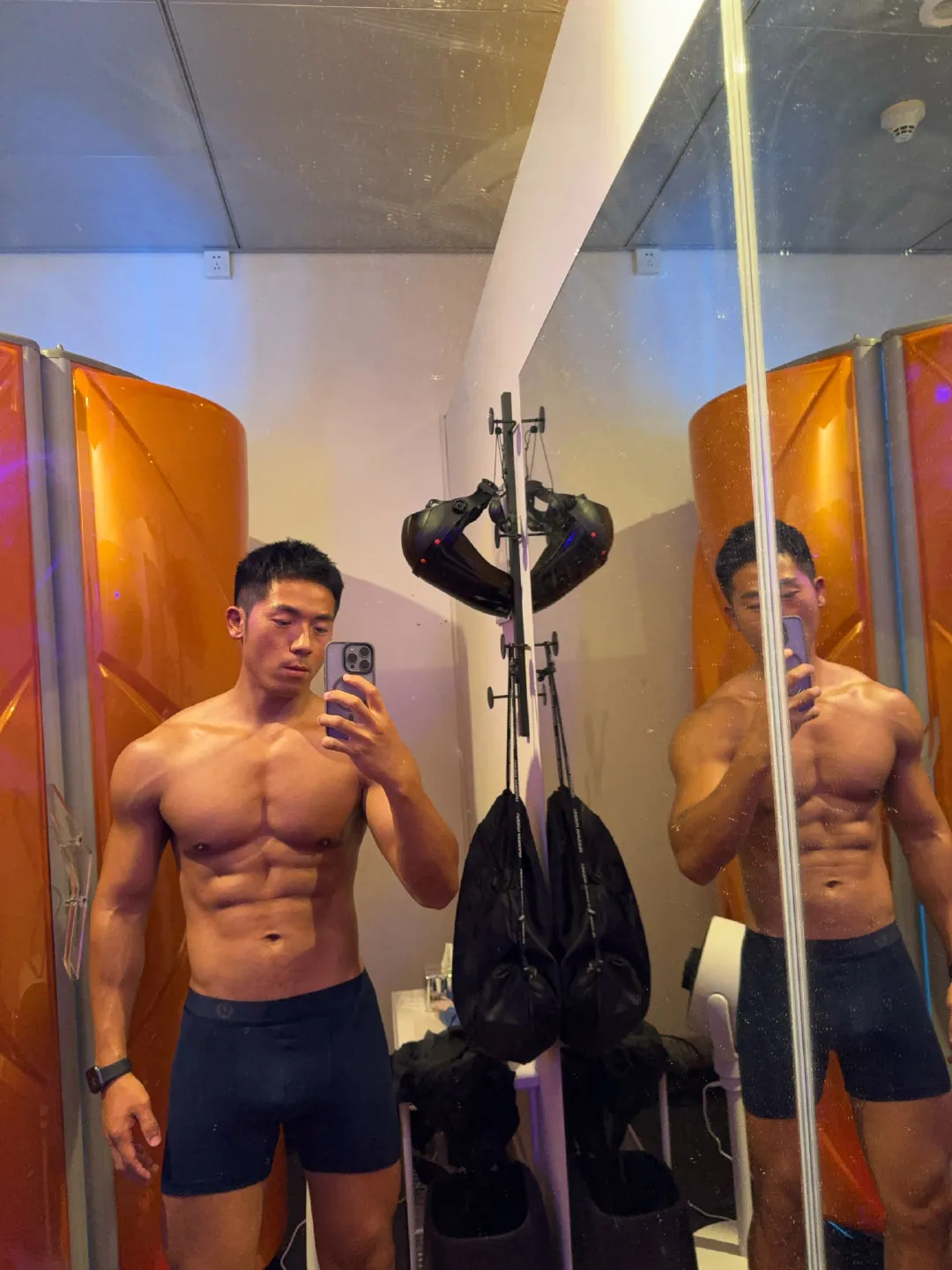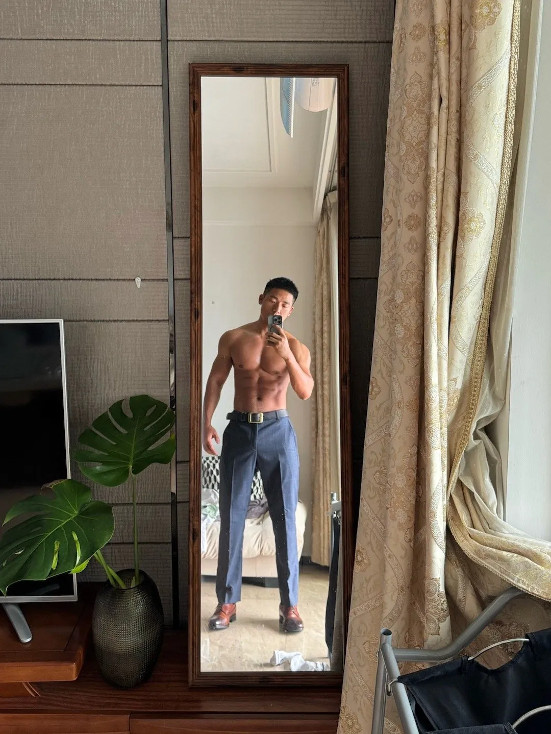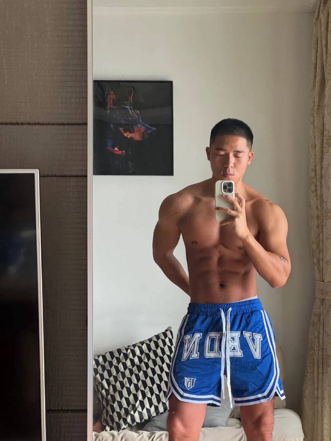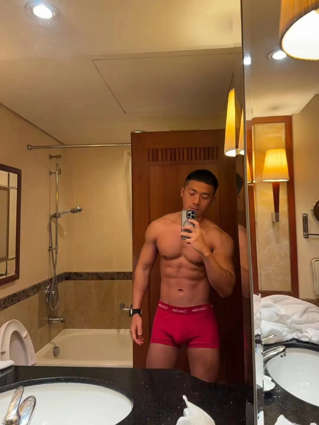 身材管理绝了,黑皮+腹肌太抓人他的第一眼杀伤力真的不容小觑。对比那种白净奶油风的男生,他的黑皮加腹肌路线特别有辨识度。腹肌块块分明,胸肌也相当扎实,但不会太过夸张,是那种穿衣显瘦、脱衣有肉的黄金比例。你能感受到,他的身体是经过系统训练的,不光有线条,还有力量感。他的X账号是@muchuanze