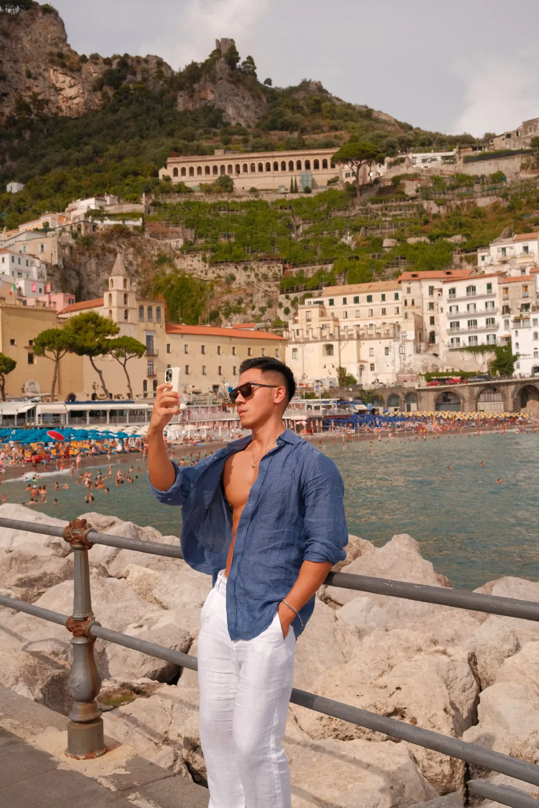 虽然他的外形看起来有点冷酷,但从一些日常分享中你能看到,他其实是个挺接地气的人。他会晒自己遛狗、喝咖啡的画面,也会分享旅游中的小片段。比如,他曾在海边抓拍夕阳下的倒影,照片里的他面带笑意,整个人都显得特别温暖。