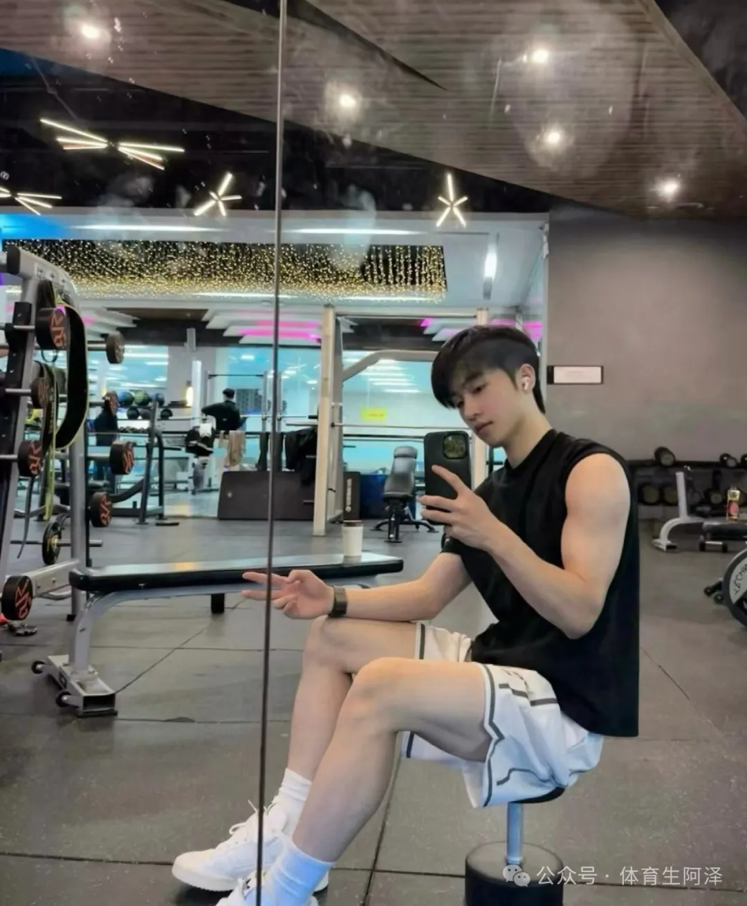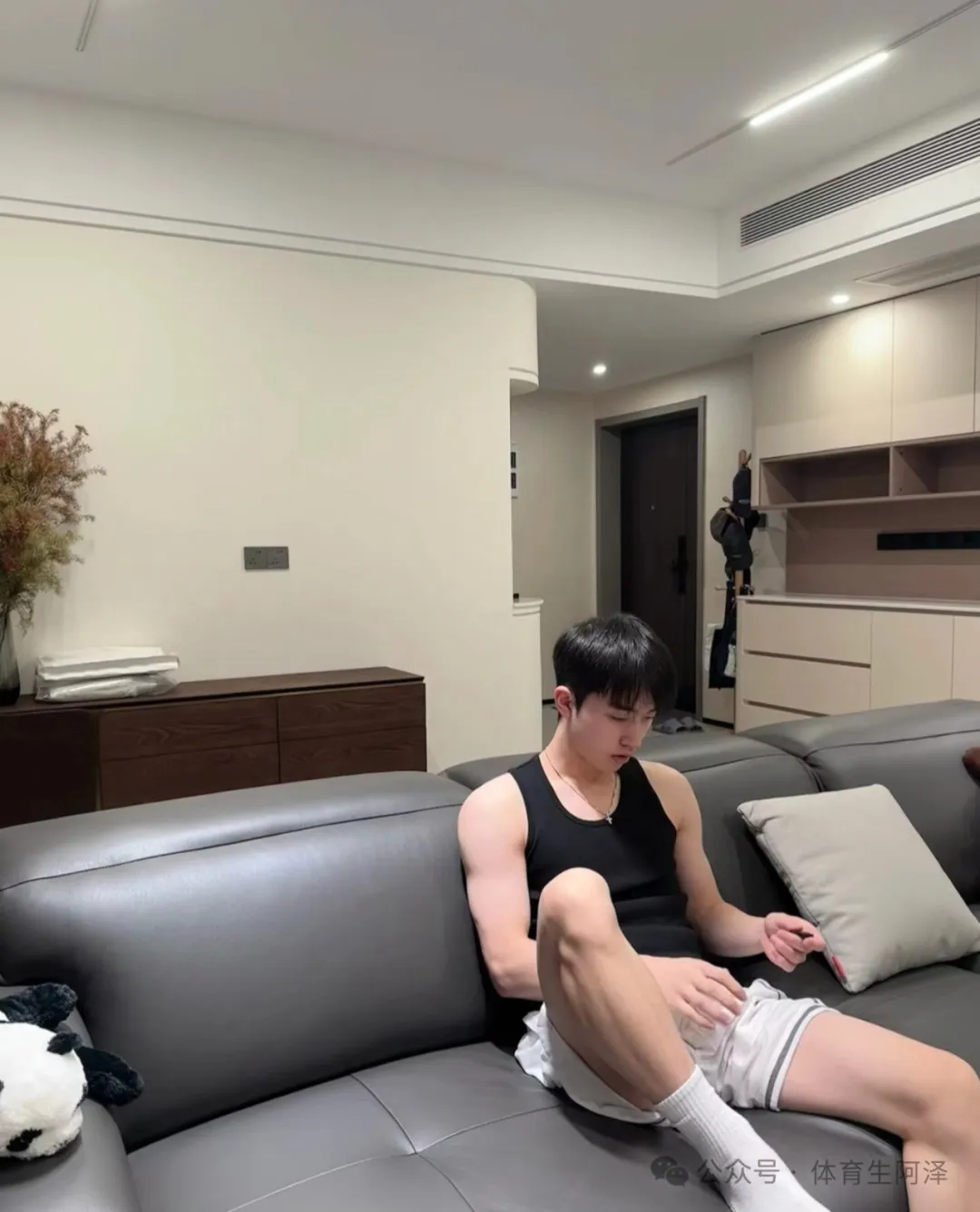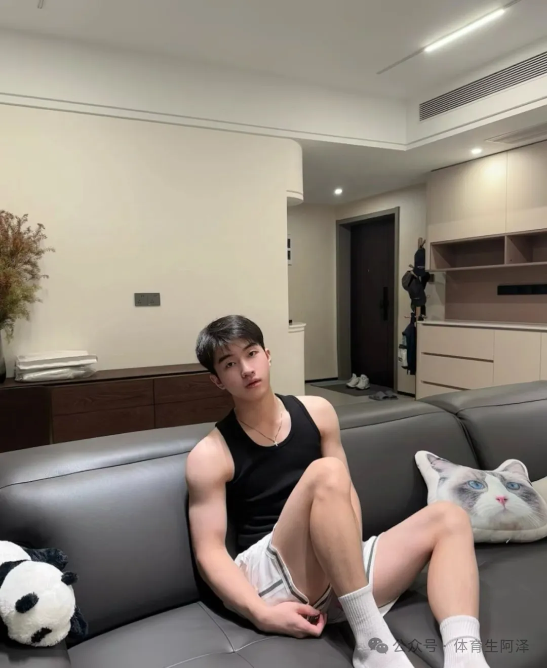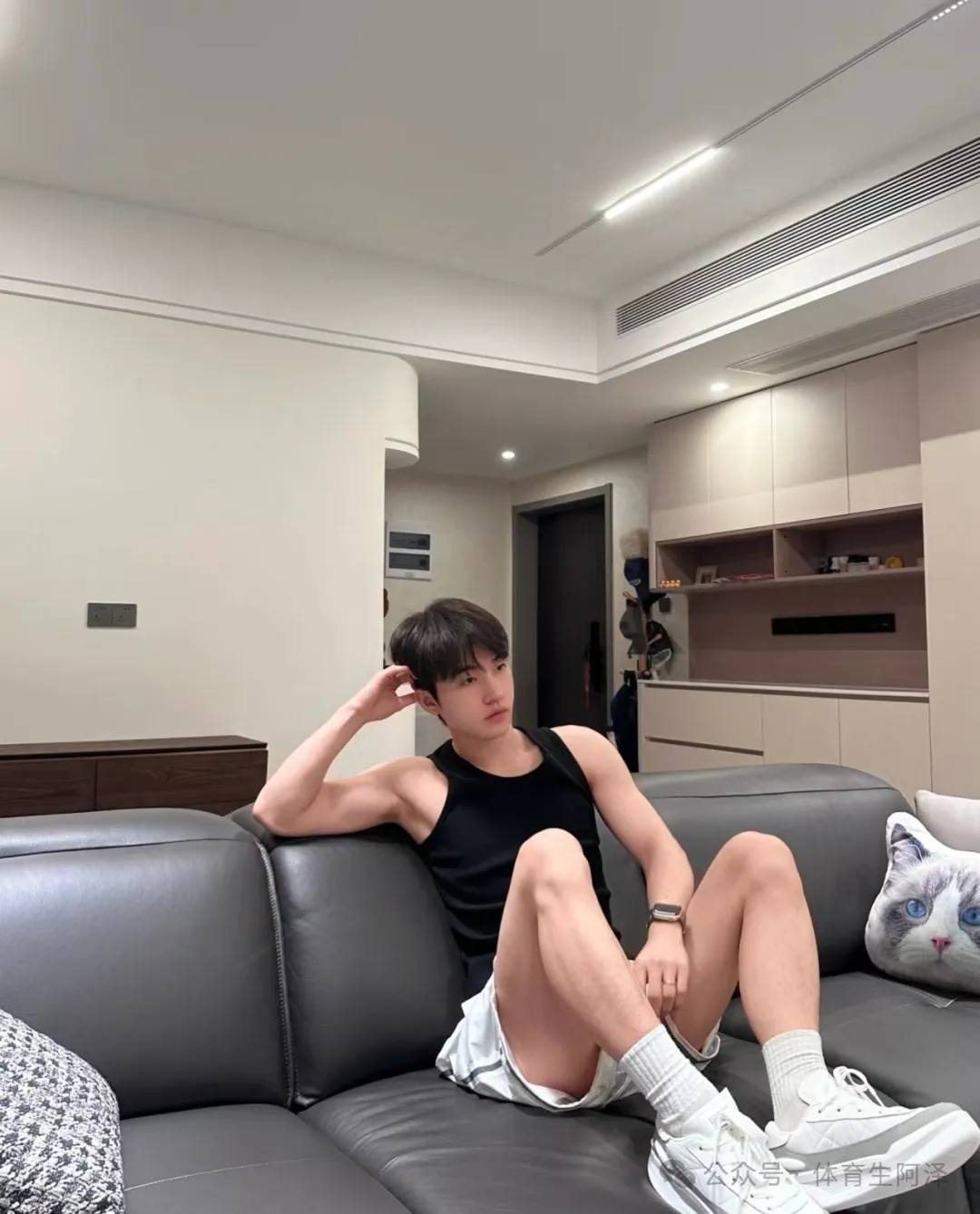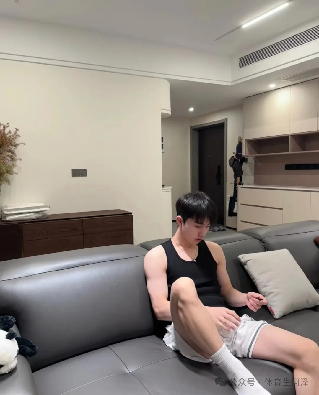 这个黑色背心也是超绝的,把这个肩膀上的肌肉衬托的完美。但是还是没有这个腿和白袜更诱人哈哈哈哈。不知道大家喜欢他的颜值还是白袜和长腿呢?