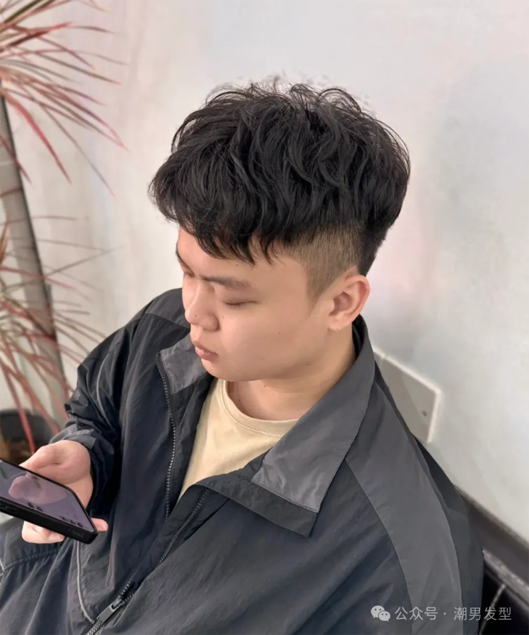 这款发型可是很多年轻男生们的最爱;两边的头发渐层铲短或者掏空,上面的头发经过纹理烫处理后,呈现出自然蓬松的定型效果,这样的发型吹干即可呈现出自然蓬松的效果,看起来非常减龄帅气,少年感满满,特别适合年轻的男生去剪。第二款:小飞机头发型