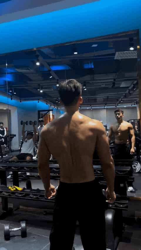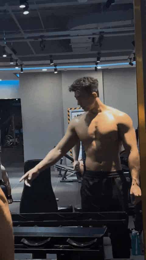 你们看,在健身房的日常锻炼照里,小哥哥的每一个动作都充满了力量美感。不论是举铁划桨,还是俯卧撑手臂用力,饱满的肱二头肌和锻炼出来的人鱼线赫然可见。想象一下,如果有这样一位腱子肉壮实的男朋友,还会有什么事是他办不到的?你们也一定能从中获得足够的安全感吧?