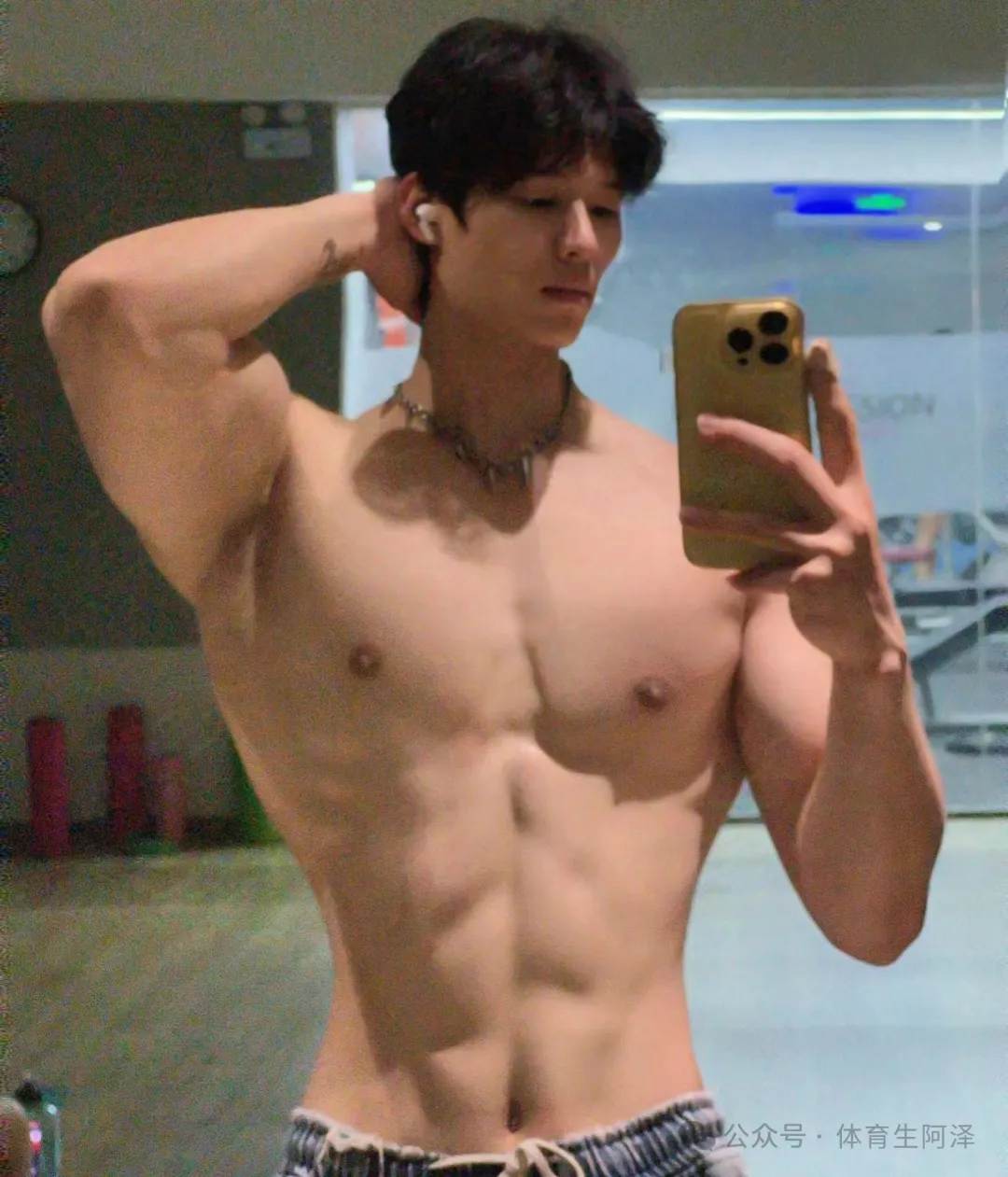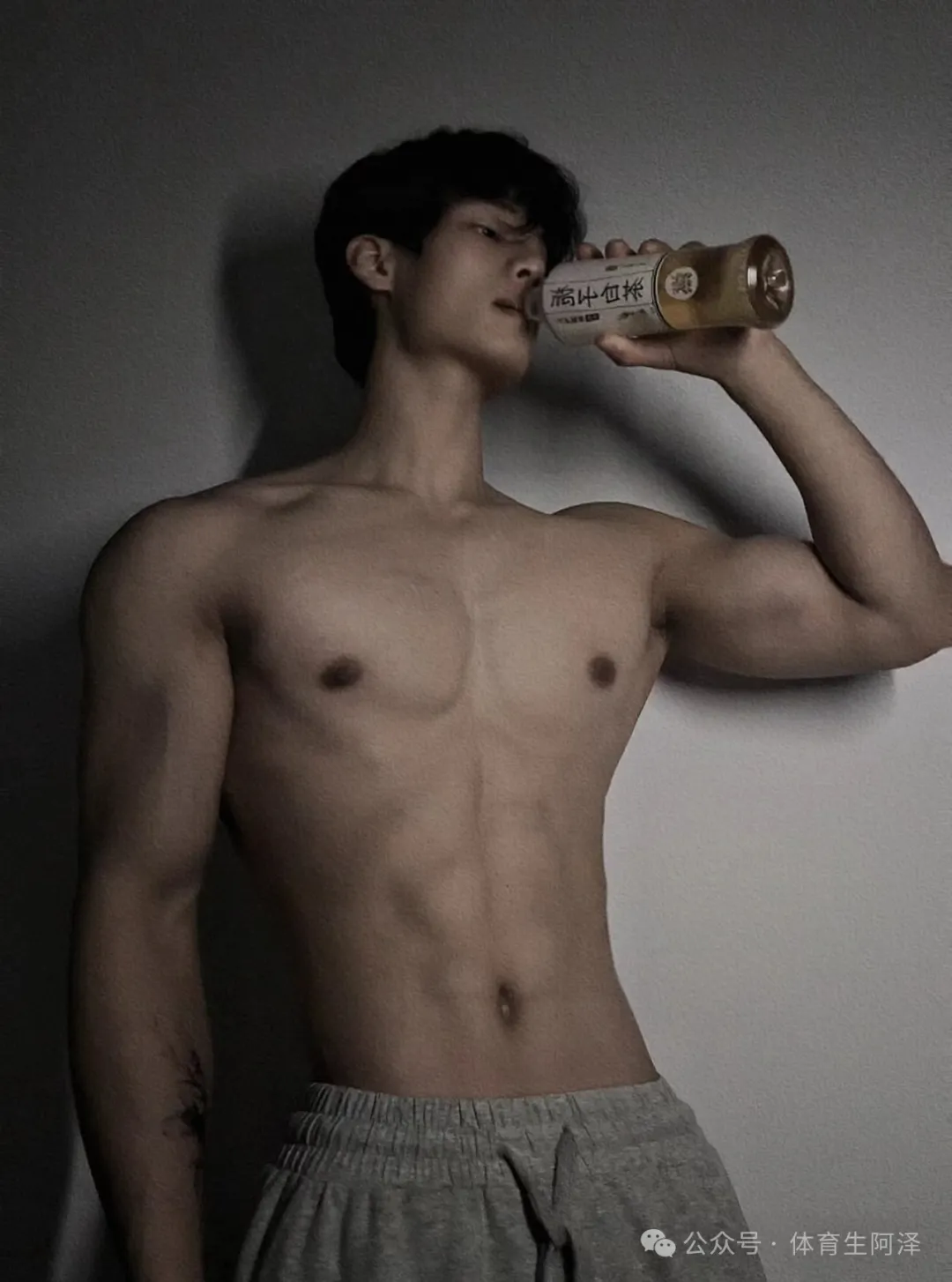 还有这张喝水的照片,这哪里是喝水啊!这完全是在诱惑阿泽啊,这个角度应该是荆条喜欢过的吧!这个侧颜角度真的绝了,尤其是这个嘴角,真的想冲进屏幕去嘬两口啊哈哈哈哈。还有这个胸肌和腹肌,这才明白宽肩窄腰的诱惑了。尤其是胸肌的形状完全是审美中的极品了,再加上两个葡萄点睛之笔完全很哇塞啊哈哈哈哈。看的阿泽一阵无名火啊哈哈哈哈。