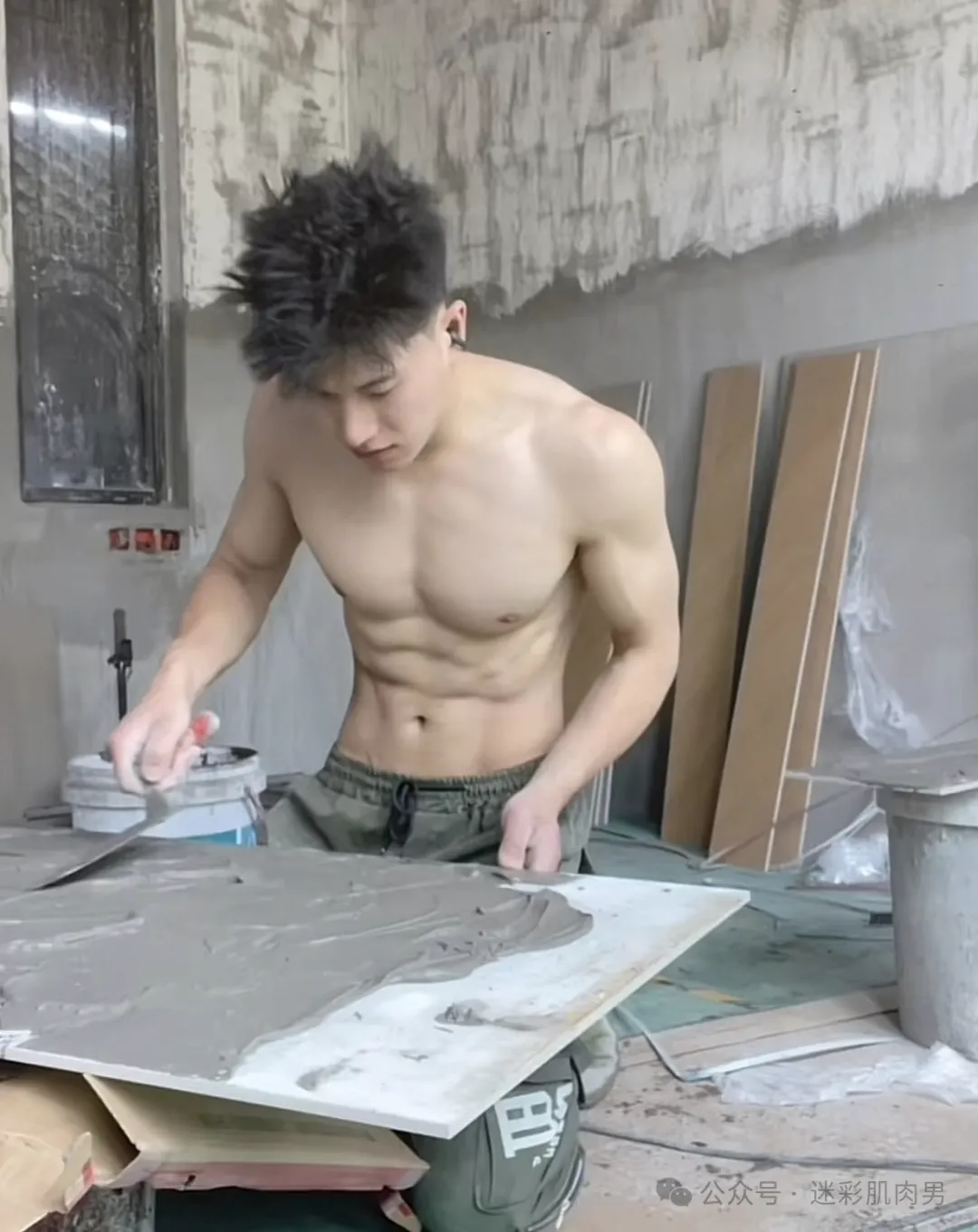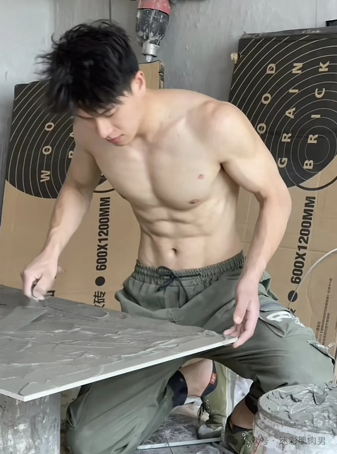 不穿衣服贴砖师傅,现在对装修工人的要求都这么高了??