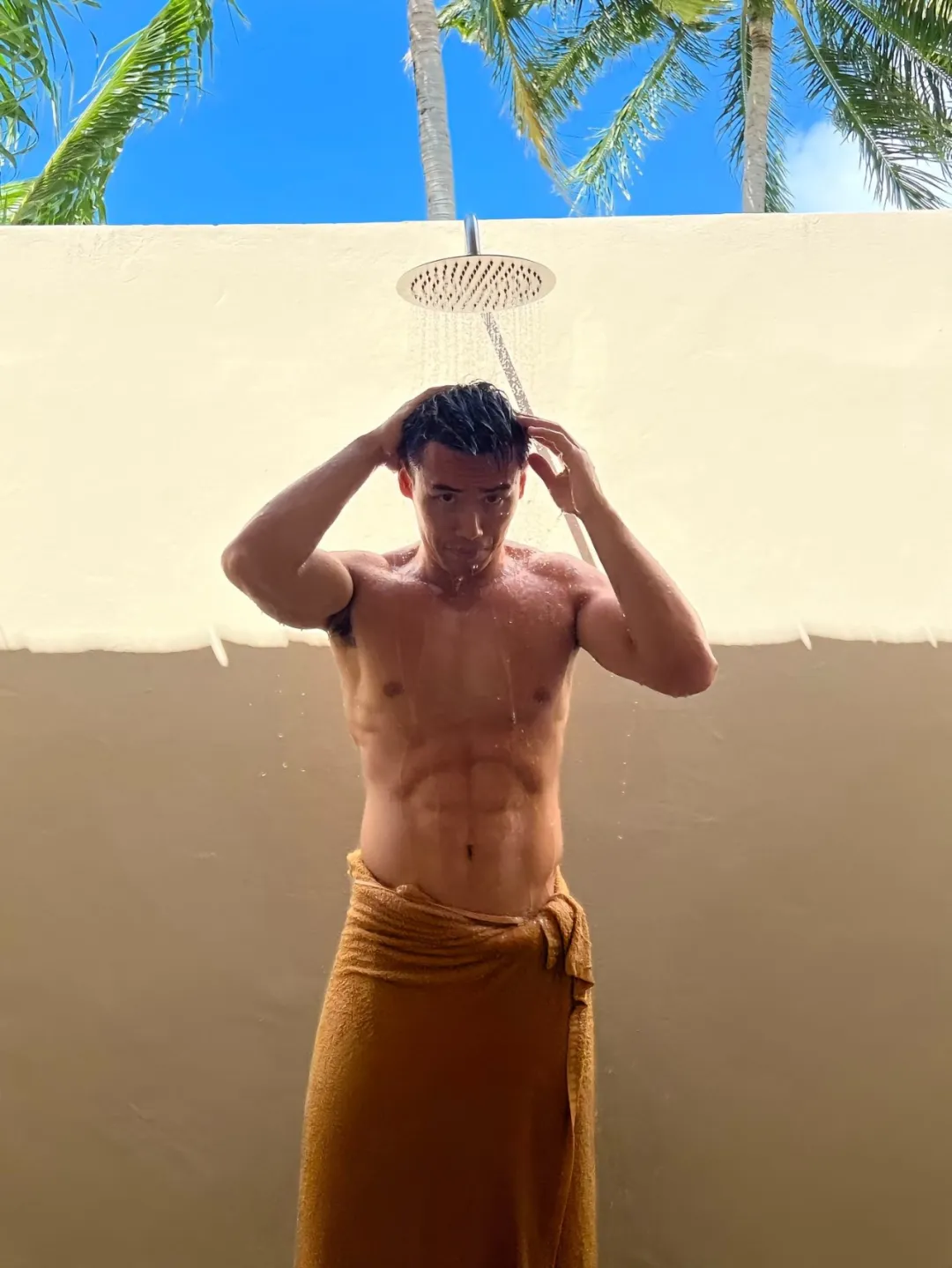 打篮球黑皮运动帅哥洗澡被拍了,还有长腿泳装照??