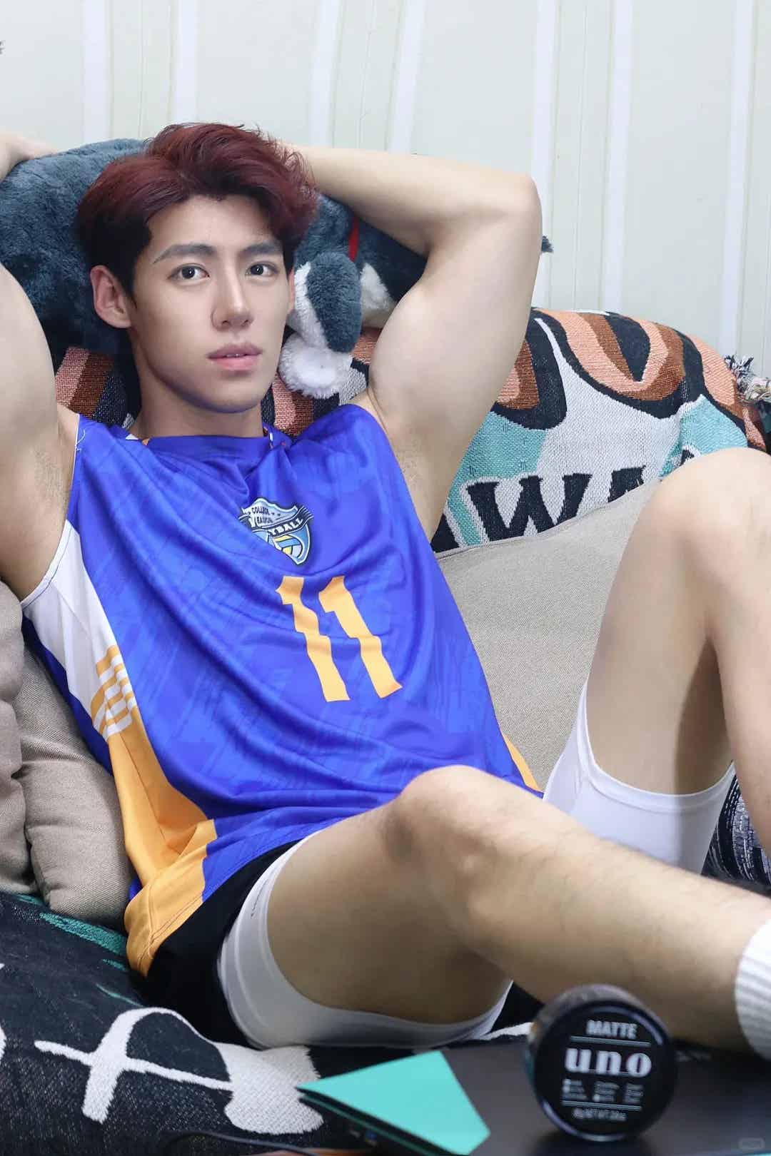他的肌肉线条分明白皮肤大长腿,一眼就能看出他是位体育生,霸气中透着阳光。