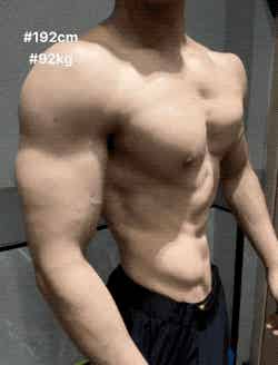 退伍后开始在健身房专业举铁出众的身体底子让他进步神速从大胸到腹肌,从麒麟臂到倒三角一点点雕刻出360度无死角的完美身材▼