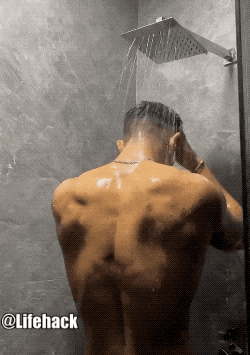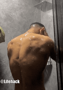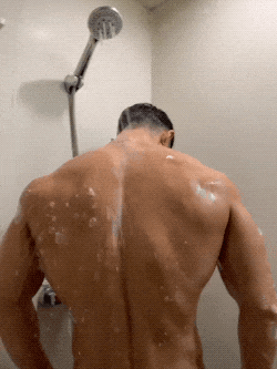 只见教练赤膊上身站在淋浴下花洒水流将宽厚的背肌打湿在灯光的照射下这副钢铁之躯熠熠生辉隐约还能看到下背部的圣诞树形状OMG,这画面也太劲爆了吧~▼