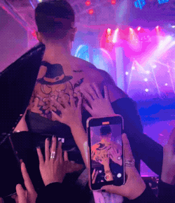 每次去夜店都免不了被美女们要求脱上衣看看这一双双迫不及待摸上去的手就知道他的宽大背肌有多受欢迎了哈哈哈▼
