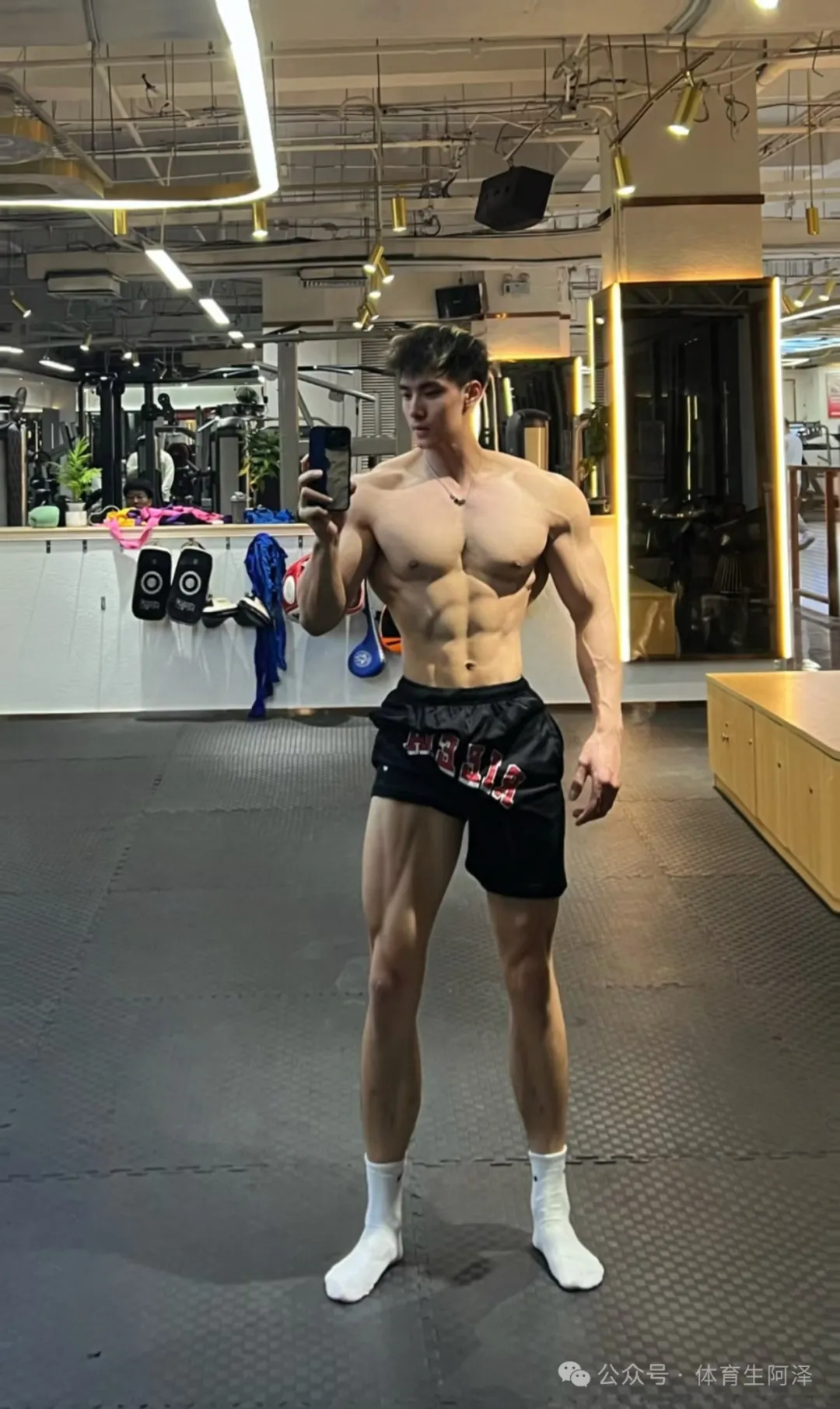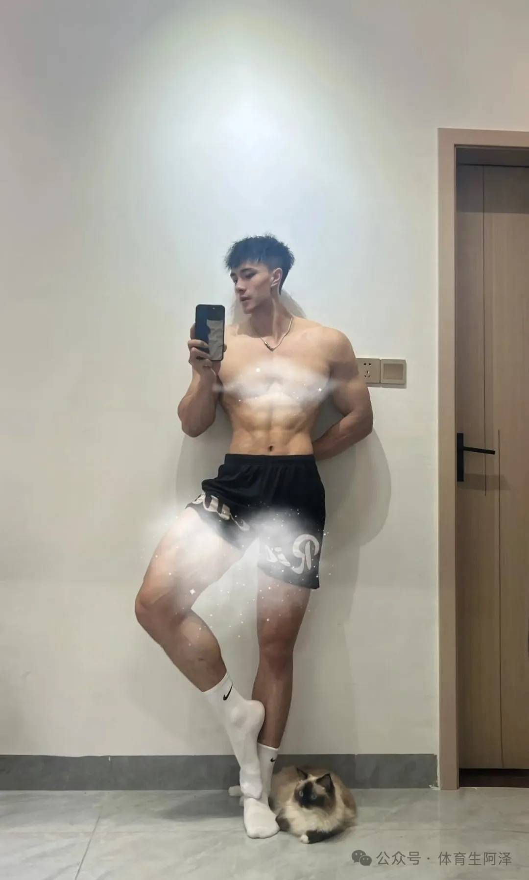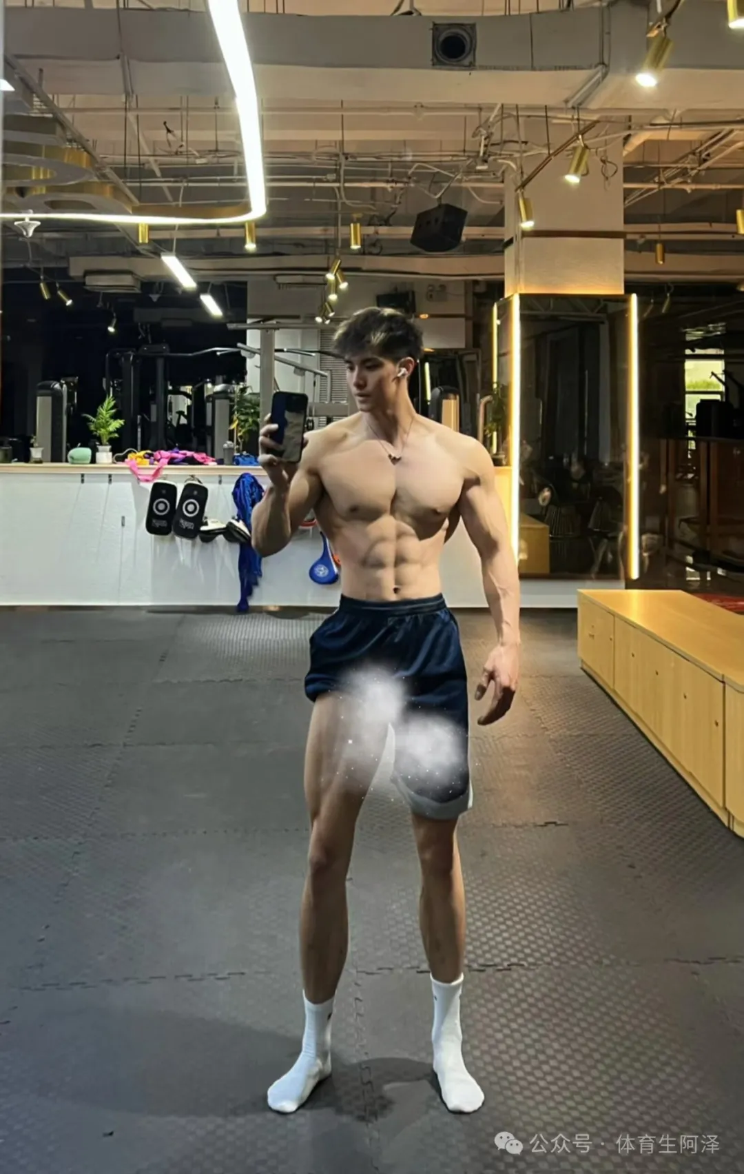 肌肉炸裂,紧身衣下的荷尔蒙冲击!195的猛男穿紧身衣,杀伤力能有多大?答案是——无法抵抗!黑色的紧身运动服贴合着他的肌肉,每一寸线条都清晰可见。**胸肌饱满、手臂线条分明,腹肌如同雕刻一般,腰腹紧实没有一丝赘肉!**运动时,汗水顺着胸肌滑落,浸湿衣料,让每一条肌肉更加突出,直接让人看呆。更夸张的是,他的腿粗得惊人!大腿肌肉紧绷,双腿力量感爆棚,随便站着就充满攻击性。每次深蹲训练,肌肉的动态变化简直是视觉盛宴,让人忍不住盯着看。