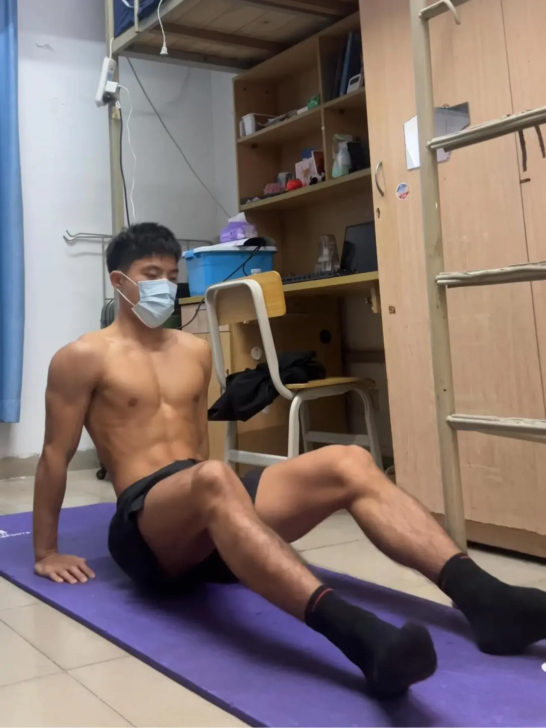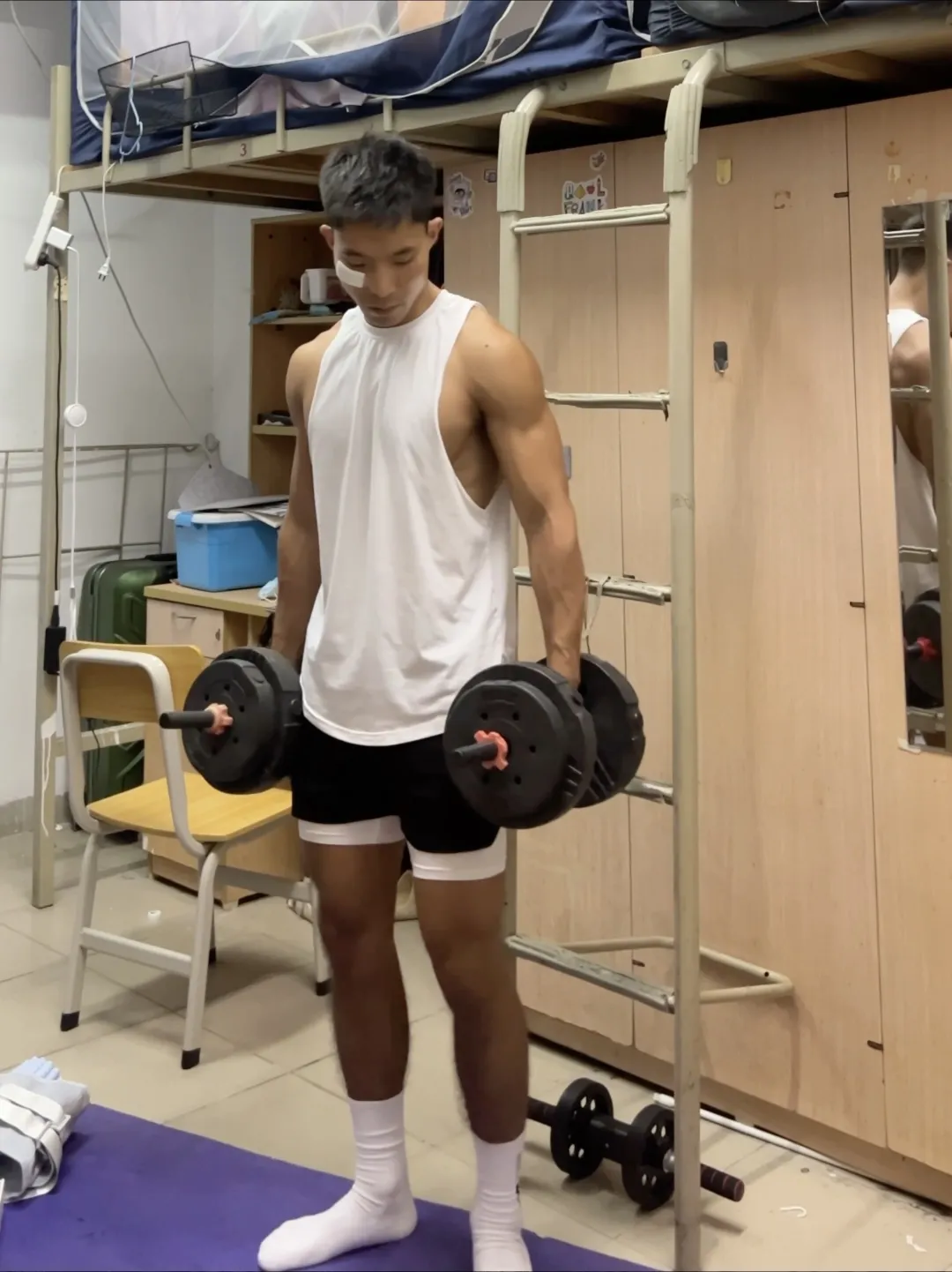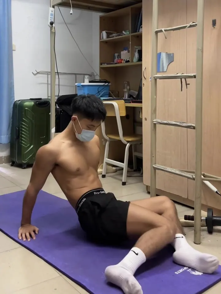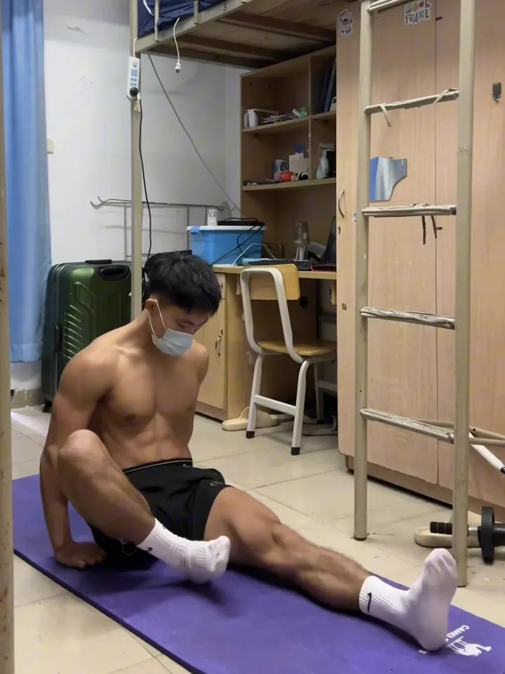要是大学有一个像小哥这样的室友,那么我的大学生活将更加滋润。每天看着他在寝室锻炼,简直大饱眼福。遇到这样的室友,等他锻炼完后,一定要在他洗澡时就帮他把汗水打湿的衣服洗了,室友就该互帮互助啦~